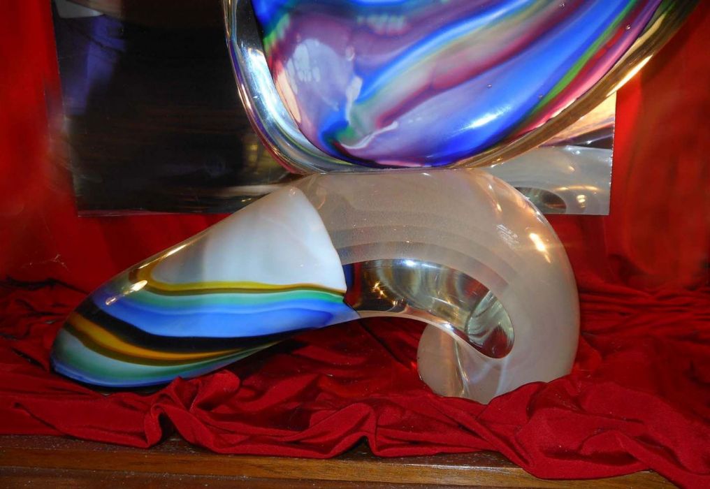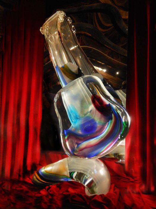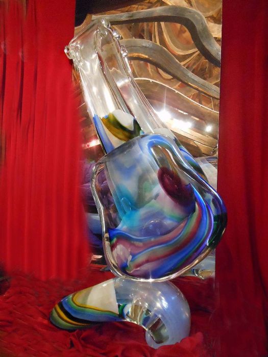 Incredibile capolavoro assolutamente museale dovuto alla mano di uno dei più importanti esponenti contemporanei della scultura in vetro. Che qui raffigura in modo davvero unico una chitarra elettrica "basso", utilizzando le più raffinate e diffiicili tecniche di lavorazione del vetro.
