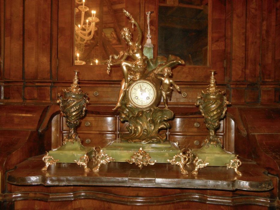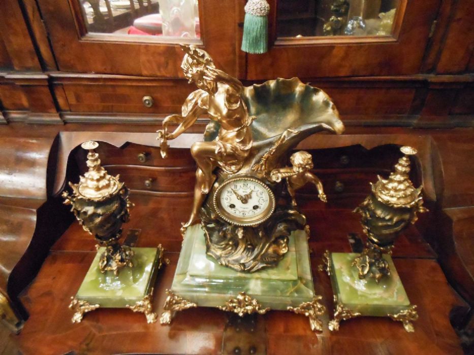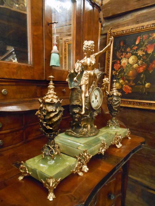 Molto belle le basi in marmo- onice verde-legno, di ottimo gusto le due ampolle che completano questo bel trittico.
