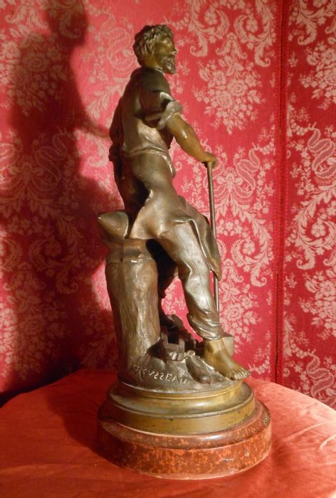 ROUSSEAU, Victor. - Scultore belga, nato a Feluy (Hainaut) il 16 dicembre 1865. Dall'età di 10 anni imparò il mestiere di scalpellino nelle cave del suo paese. A 11 anni, è scalpellino al Palazzo di giustizia di Bruxelles, allora in costruzione, dove scolpisce anche alcuni ornamenti, e lavora per sette anni. A 18 anni, entra nello studio di uno scultore decoratore, seguendo contemporaneamente i corsi dell'accademia, sotto la guida di van der Stappen. Ma nello stesso tempo, frequenta l'opera e i concerti. Wagner, che comincia a imporsi, e Beethoven producono su di lui una profonda impressione. Il R. personifica, del resto, quegli artigiani valloni, sognatori, idealisti, intellettuali, la cui anima musicale dà un senso armonioso alle loro manifestazioni di bellezza. Scalpellino prima che scultore, R. ricorda gliymaigiers delle cattedrali del Medioevo, non soltanto per la sua evoluzione, ma anche per le opere eseguite con intenso amore, e così sincere e commoventi: numerosi monumenti, gruppi, immagini allegoriche e bellissimi busti. Le figure di donne e di bambini, soprattutto, sono di una grazia e di un fascino squisiti. Fu direttore dell'accademia di Bruxelles. Le sue opere si trovano in tutti i principali musei d'Europa e d'America.