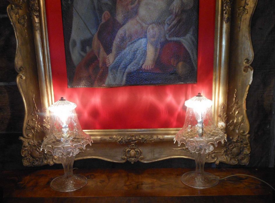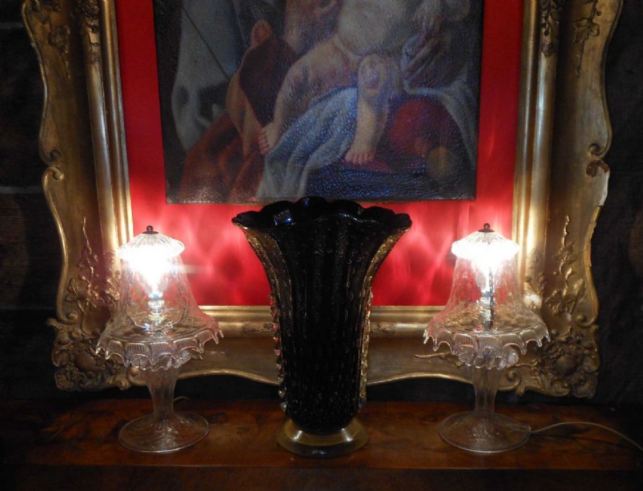 Coppia di lumette degli anni Quaranta eseguite a Murano (Venezia) con la Tecnica a cabochon. Particolarmente eleganti e ben proporzionate.