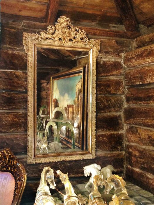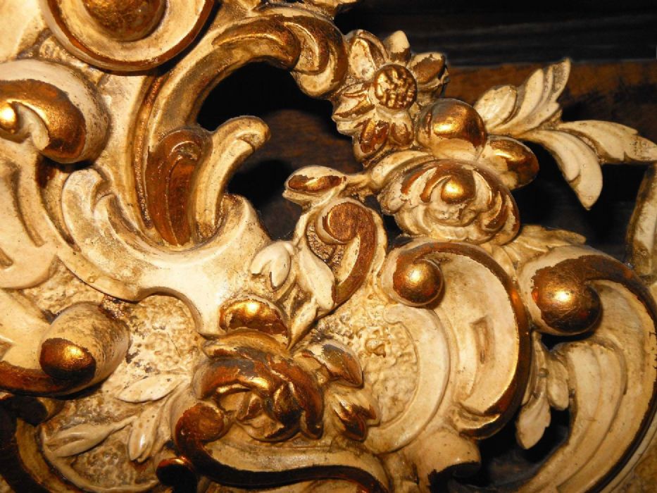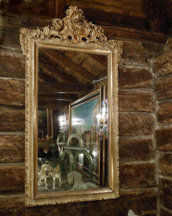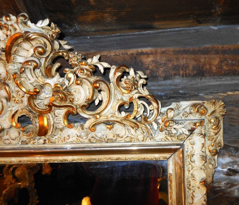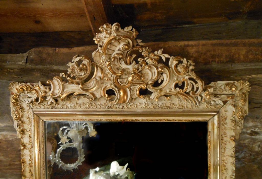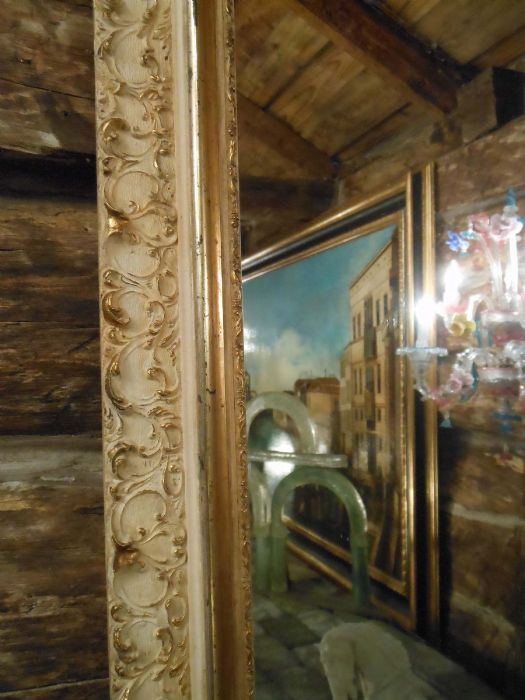 Specchiera in legno laccato con bordura in pastiglia.