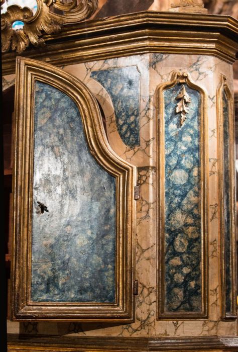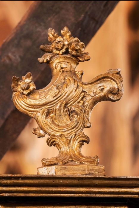 Un mobile davvero unico nel suo genere e certamente frutto di una ricca committenza privata, esaltato dalla preziosa cimasa centrale dorata e dai due pinnacoli anch'essi dorati a mecca a motivi benauguranti.