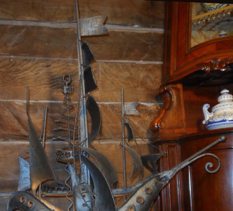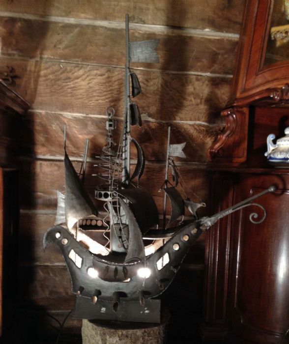 Grande Galeone in ferro battuto, di fantasia, realizzato a mano artigianalmente anche con materiale di recupero.