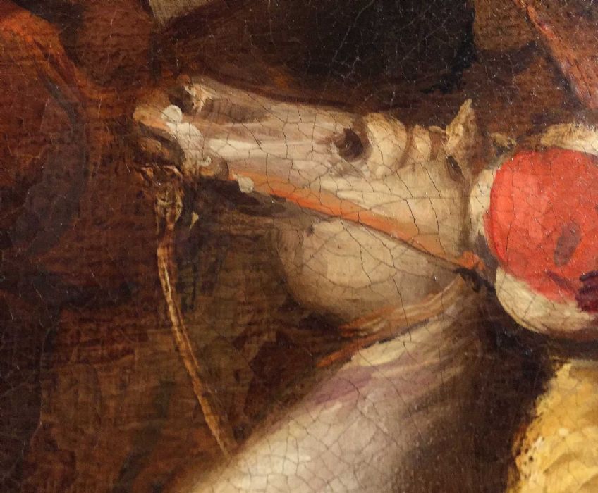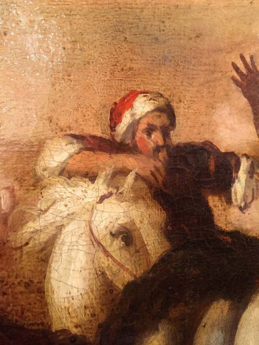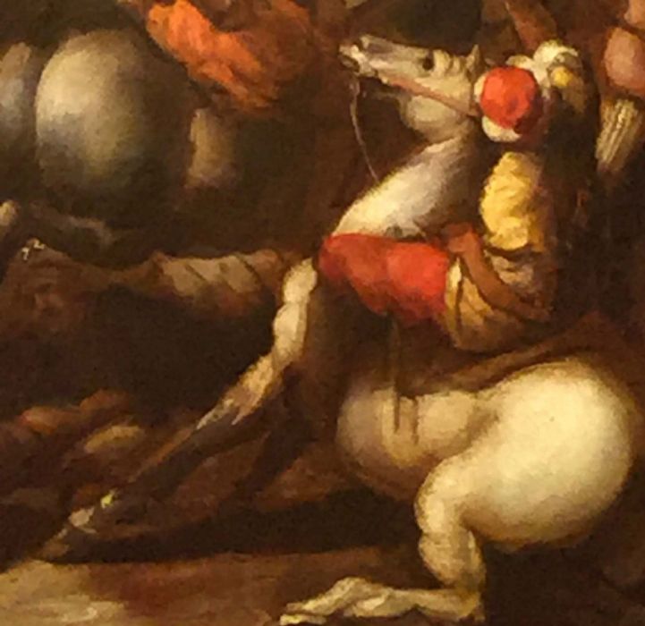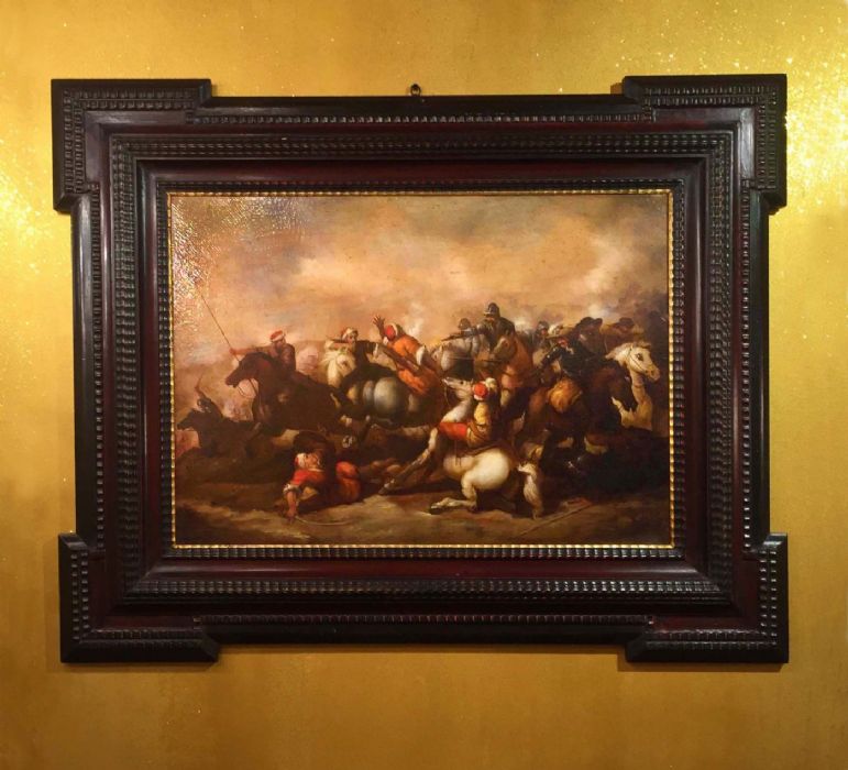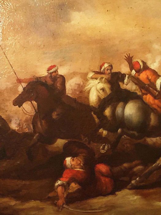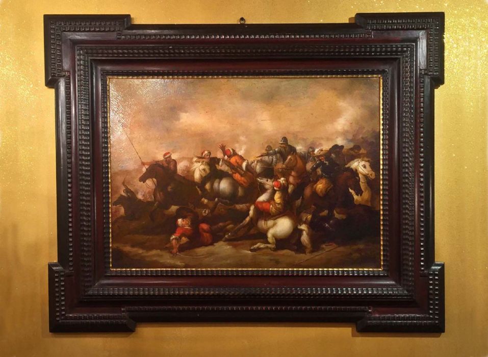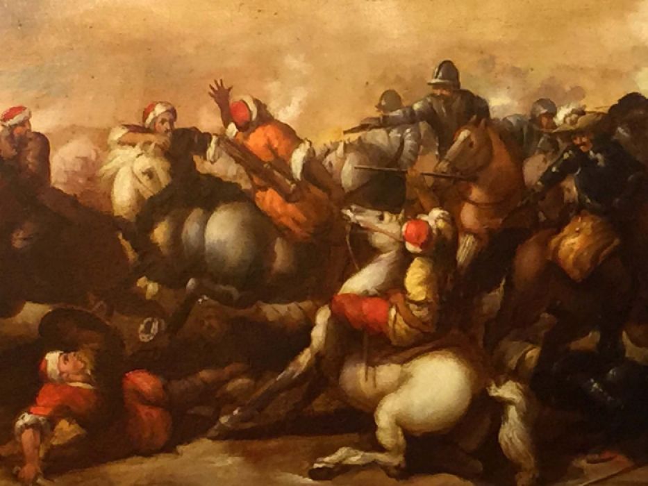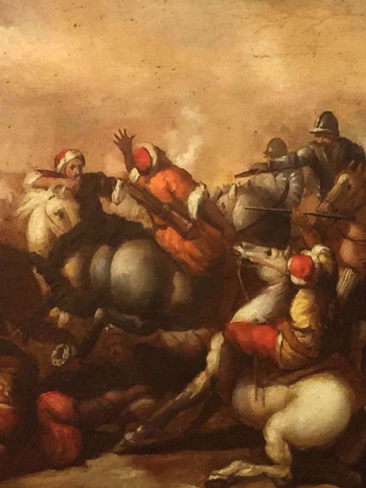 Bell'esempio di battaglia fra cavalieri e mori secondo i modelli compositivi della tradizione napoletana ed ispanica.
