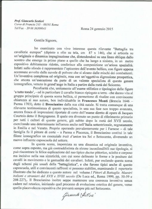 G. Sestieri “Battaglie: maestri italiani del XVII e XVIII secolo. Mostra da collezioni private” (catal., Lumezzane), a cura di Giancarlo Sestieri, Roccafranca (BS) 2002, pp. 38 s. (schede 10 s.)