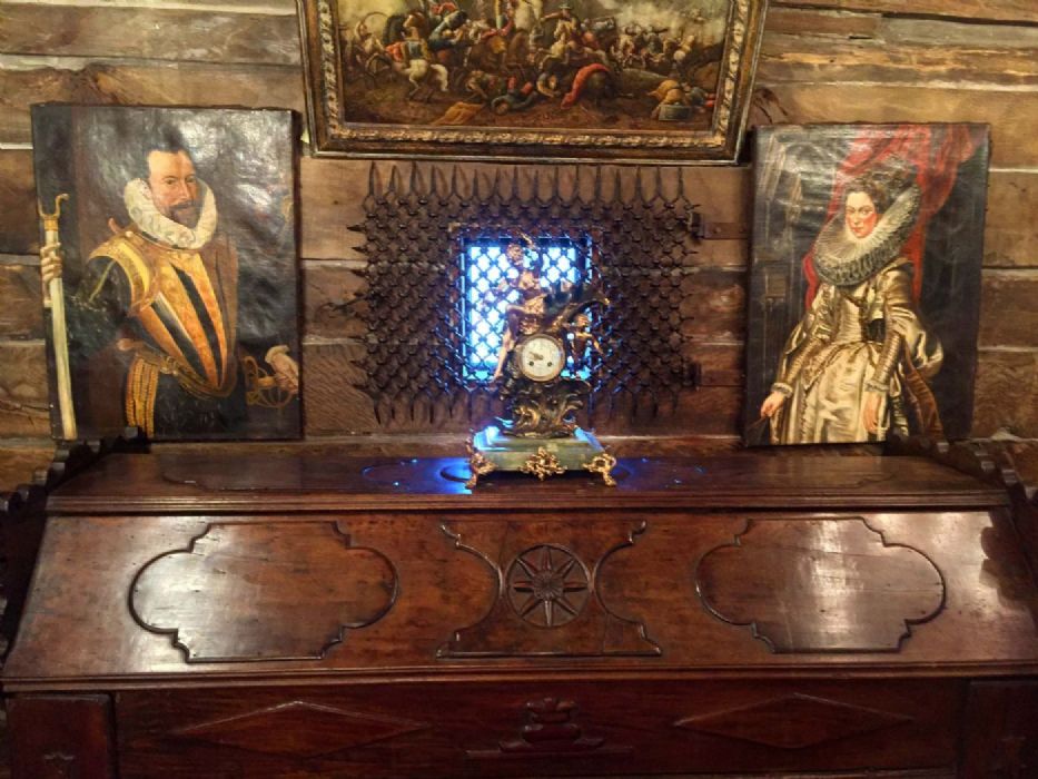 Qui ritroviamo il piede dritto della tradizionale mobilia emiliano-romagnola di fine '500 ed inizio '600. Interessante il cassetto inferiore che delimita la parte bassa del grande mobile. Particolari le "bugnature" sul fronte e sui fianchi (a forma di grandi rettangoli "bilobati" e rombi allungati) realizzati a rilievo, carattere che distingue i modelli tipicamente romagnoli come questo da quelli emiliani (in genere privi di bugne, lisci e ricchi di borchie). Realizzati soprattutto per le grandi cucine e sale da pranzo nobiliari o dell'alta borghesia con la funzione principale di contenere pane e farina (come tutte le madie), gli arcili erano denominati anche “madie dei cavalieri” perché sul coperchio (che si presenta a forma di sacello monumentale) venivano appoggiate le selle mentre, sui bordi rialzati laterali, s'usava appendere i finimenti dei cavalli. Il nome "arcile" potrebbe appunto derivare dalle parole "arcione", "arco" o "arciere" o "arca" (per la tipica forma del grande coperchio).