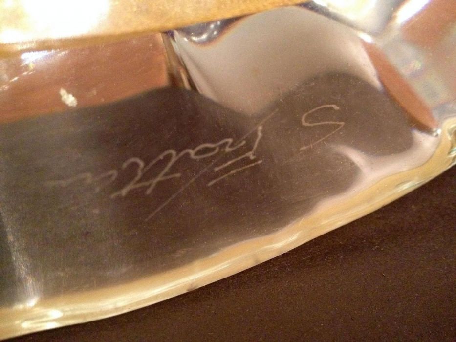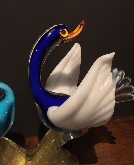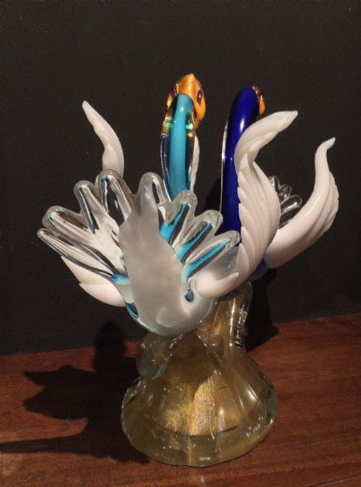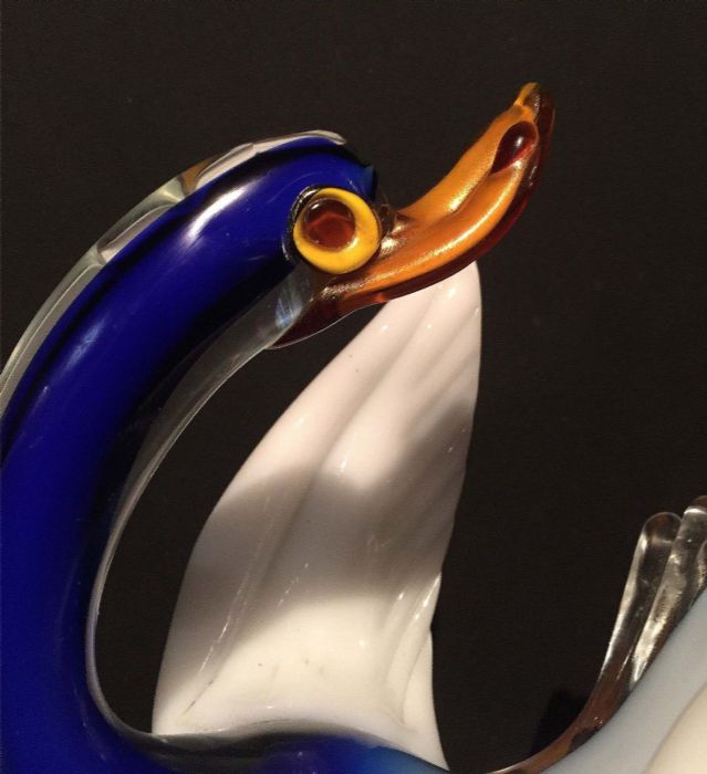 L’opera è a nucleo pieno, in vetro "lattimo" con policromie. La base ha una lavorazione a "incalmo" con oro.