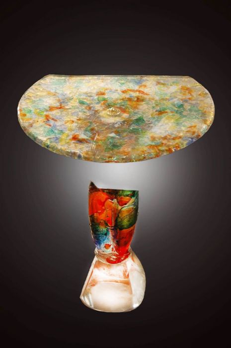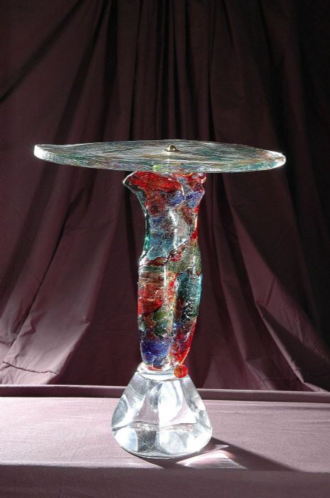 Capolavolo creato dal maestro Walter Rossi , un piccolo tavolo da muro con base raffigurante nudo di donna in vetro policromo.