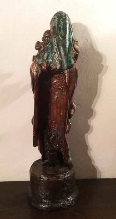 Nelle sculture lignee del periodo neoclassicista (al quale va assegnata l’opera), per evitare fessurazioni nel legno, era d’uso scavare posteriormente la scultura. Come nel nostro caso evidenziato dalle “sgorbiature” della parte scavata.