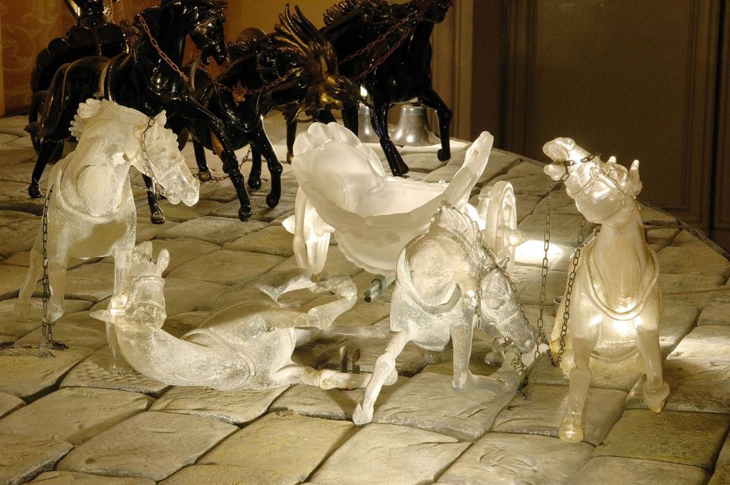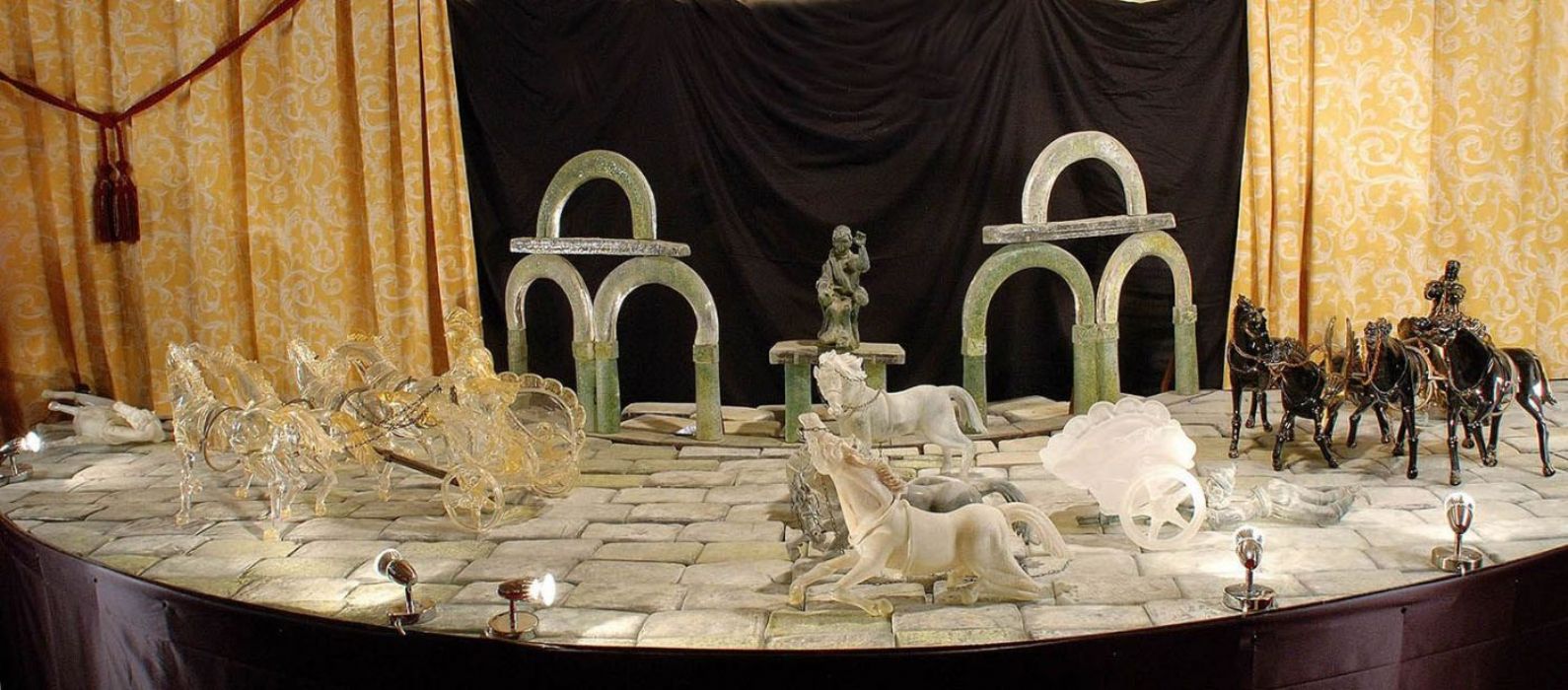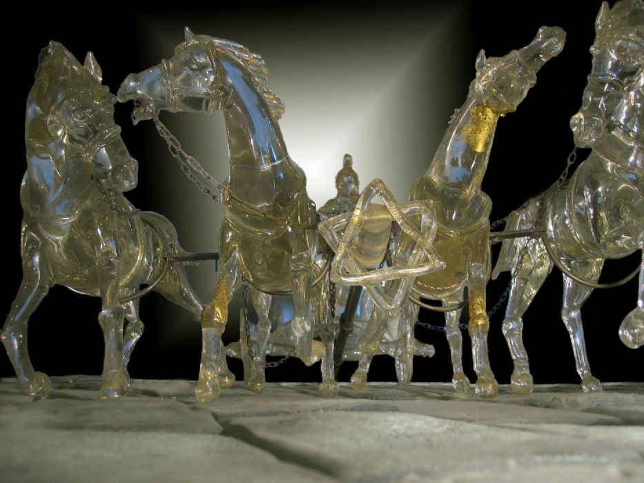 quadriga di sinistra (Ben Hur coi cavalli Aldebaran, Antares, Rigel e Aldair) lavorazione "cristallo (cristao) e oro";