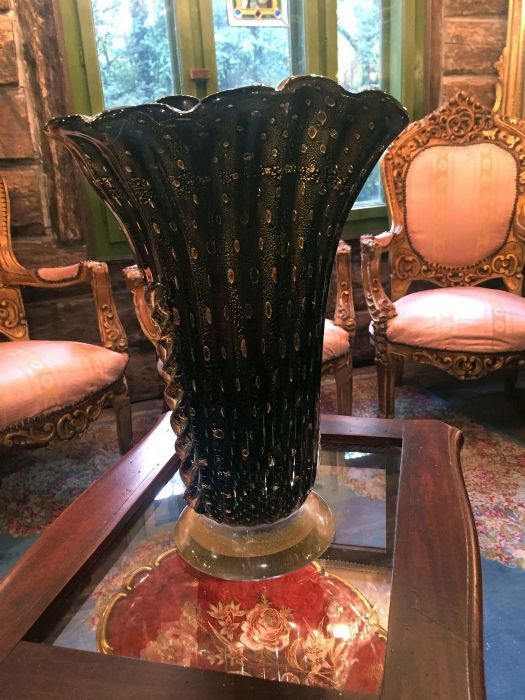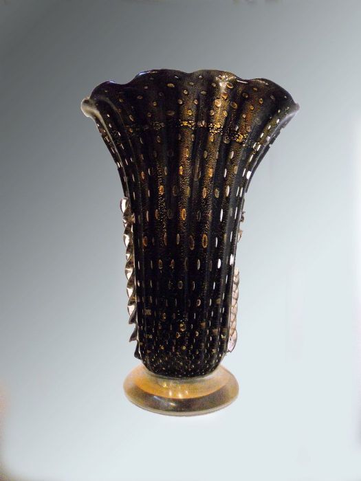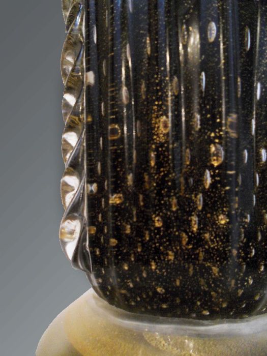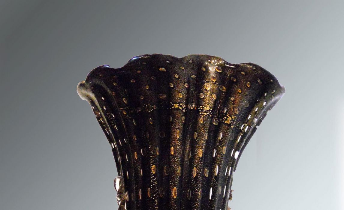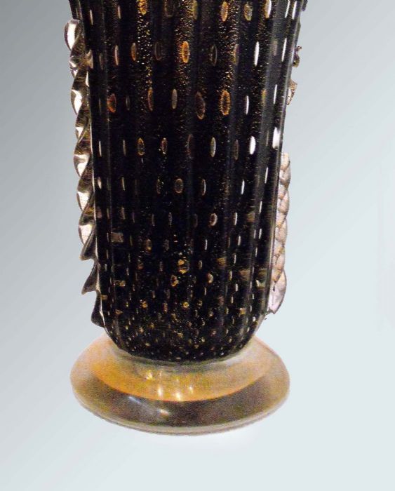 Elegante e particolare vaso a coste nero e oro con bolle in intrusione.
