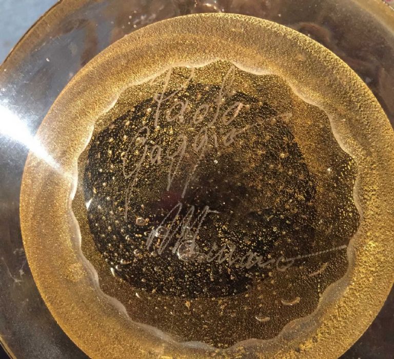 L’opera è stata eseguita interamente a mano dal Maestro vetraio di Murano Paolo Gaggio. Il vaso è firmato sulla base con incisione a freddo dall'artista.