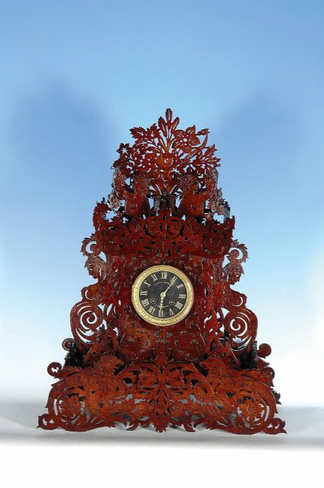IMPORTANTE E RARISSIMO OROLOGIO DA TAVOLO SORRENTINO IN LEGNO DI PINO TRAFORATO - Capolavoro di alta decorazione - Funzionante