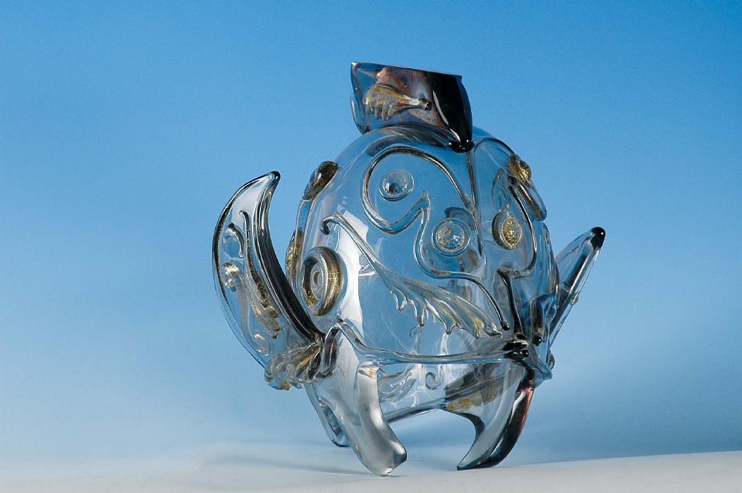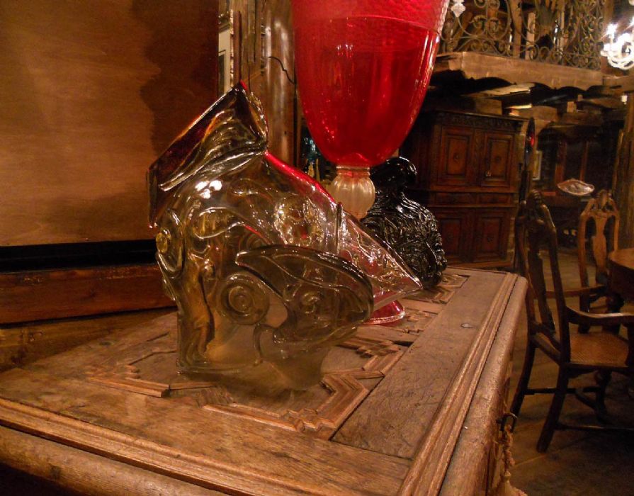 Originale scultura in vetro soffiato raffigurante un elmo romano. Opera unica delmaestro Ermanno Nason.