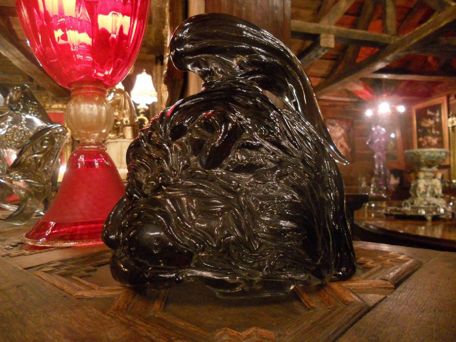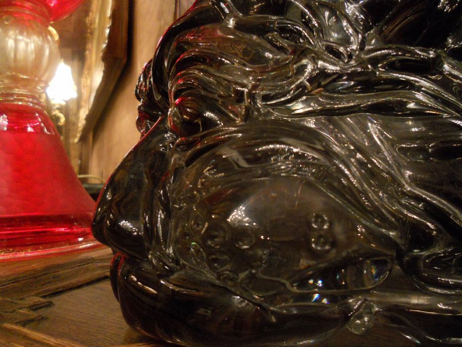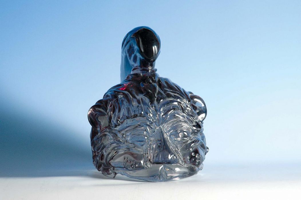 Scultura in vetro soffiato raffigurante un elmo barbaro. Opera unica.