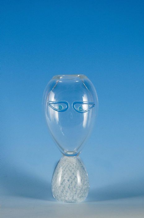 Scultura in vetro soffiato con lavorazione "lattimo", "reticello" e "incalmo".