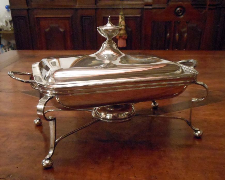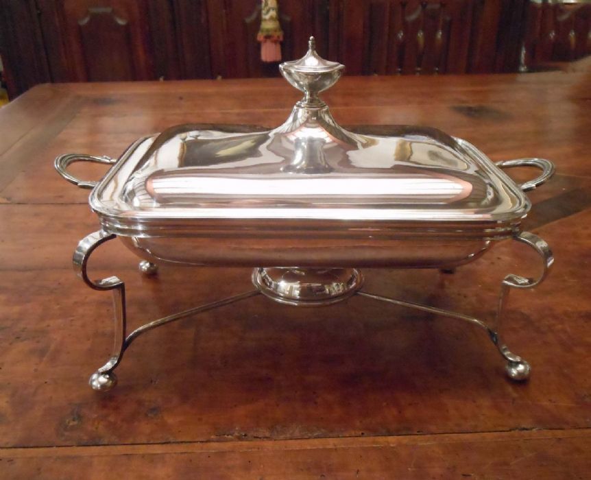 Raffinato scalda vivande inglese di forma rettangolare composto da: