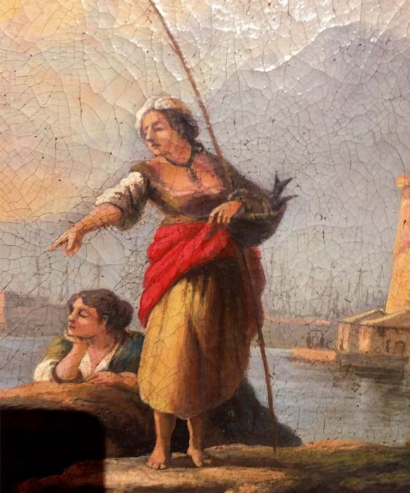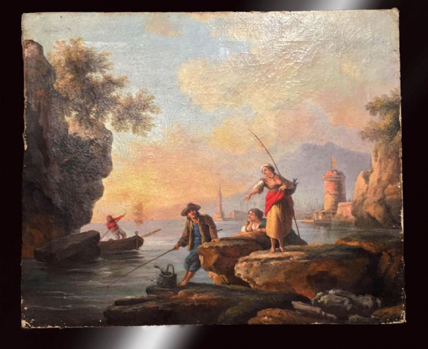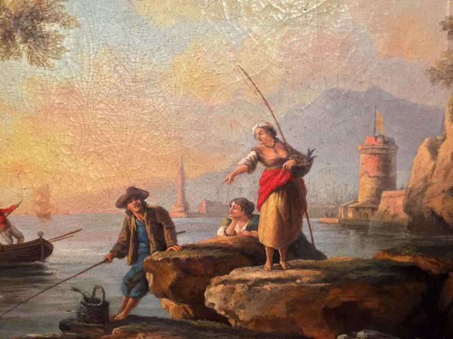 Un bel dipinto ben eseguito che riproduce uno dei famosi quadri eseguito nel 1779 dal pittore francese Claude Joseph Vernet, noto per le vedute marine.