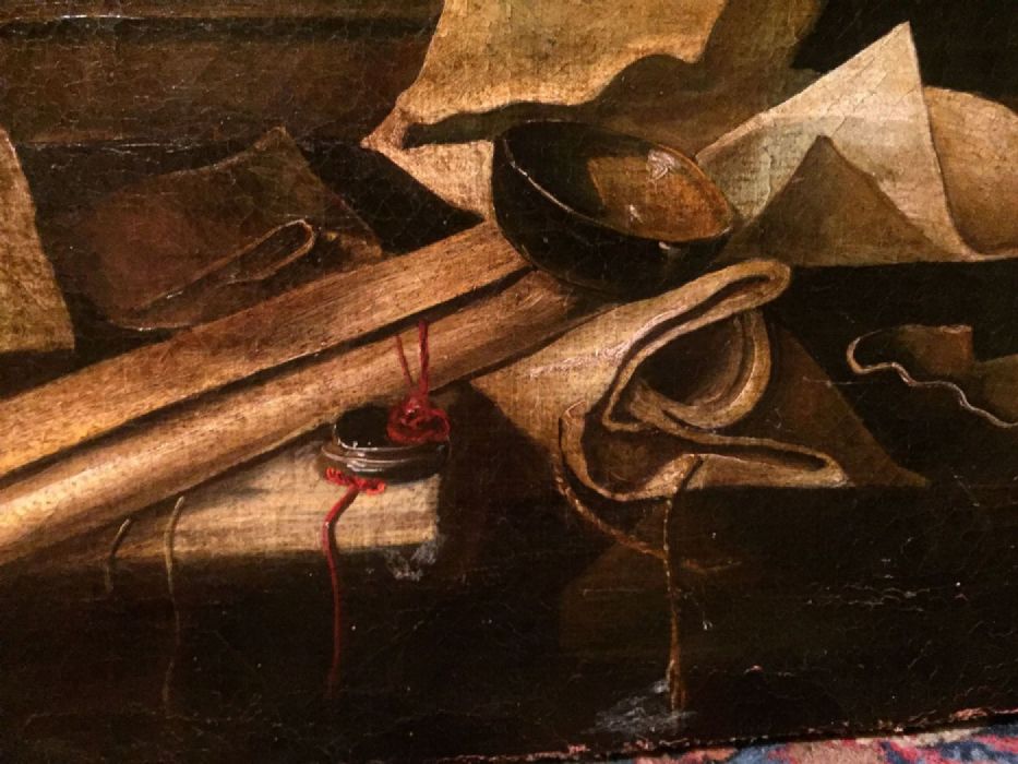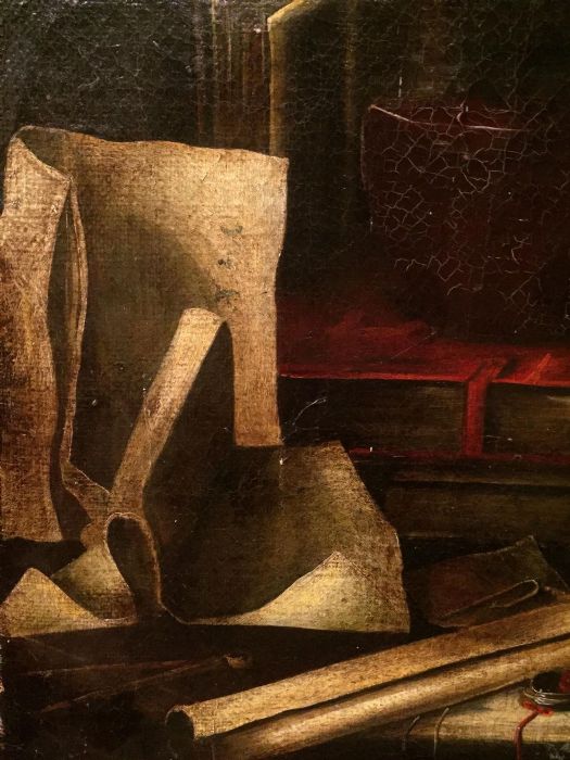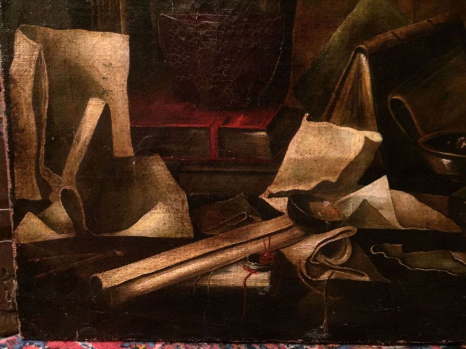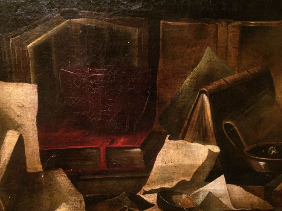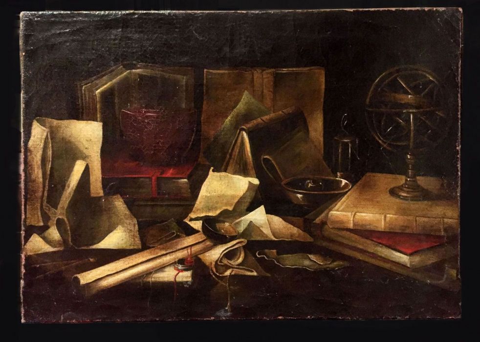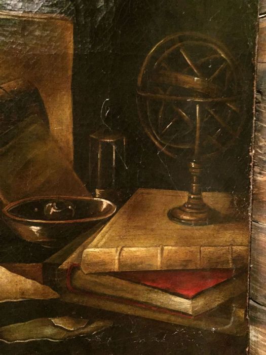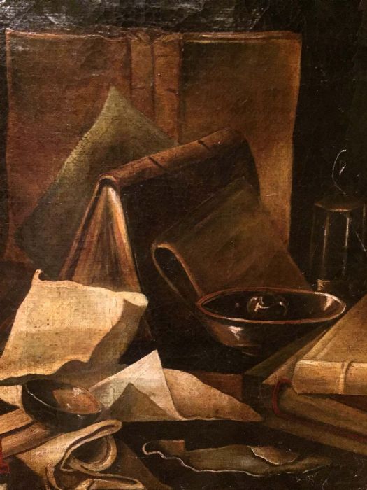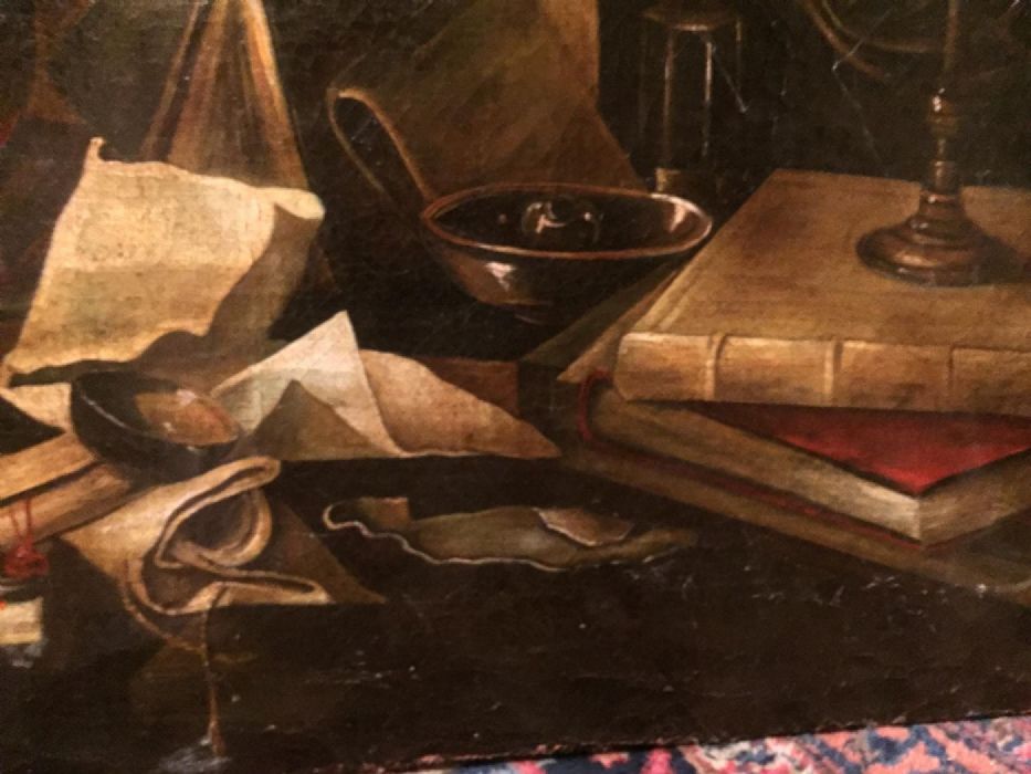 Una sapiente ed affascinante pittura di inizio '800 riferibile all'ambito di Bartolomeo o Bonaventura Bettera (pittori bergamaschi vissuti fra la metà del Seicento e la metà del Settecento) in cui ritroviamo strumenti scientifici come l'astrolabio (è un antico strumento astronomico portatile che serviva ai naviganti per misurare l'altezza degli astri sull'orizzonte, poi sostituito con il sestante ), piccola lanterna, pergamene, antichi libri, a ricordarci le “Vanitas” dove ogni oggetto aveva un particolare significato del trascorrere del tempo.
