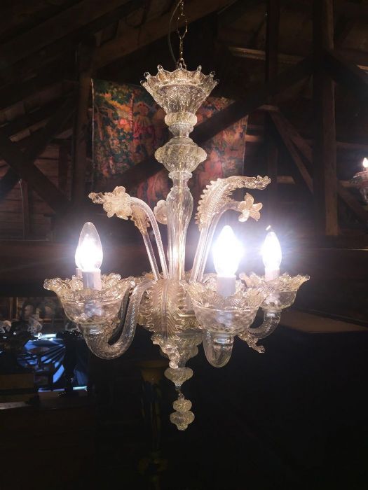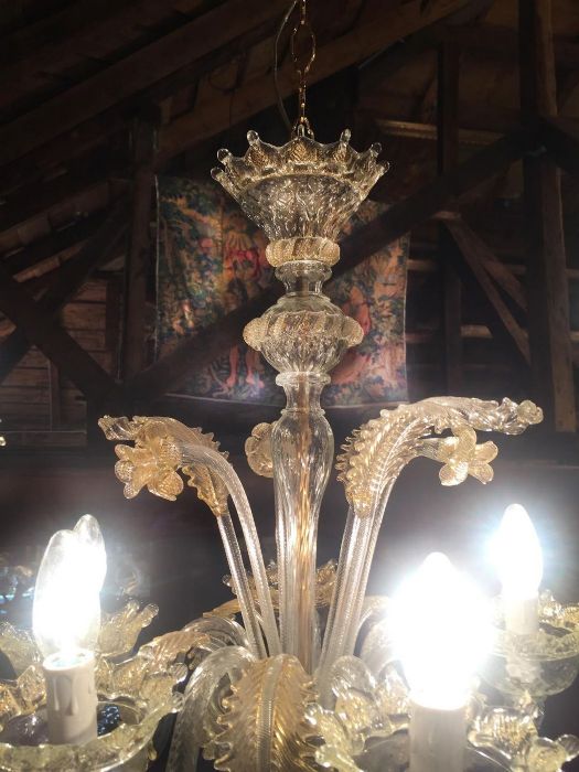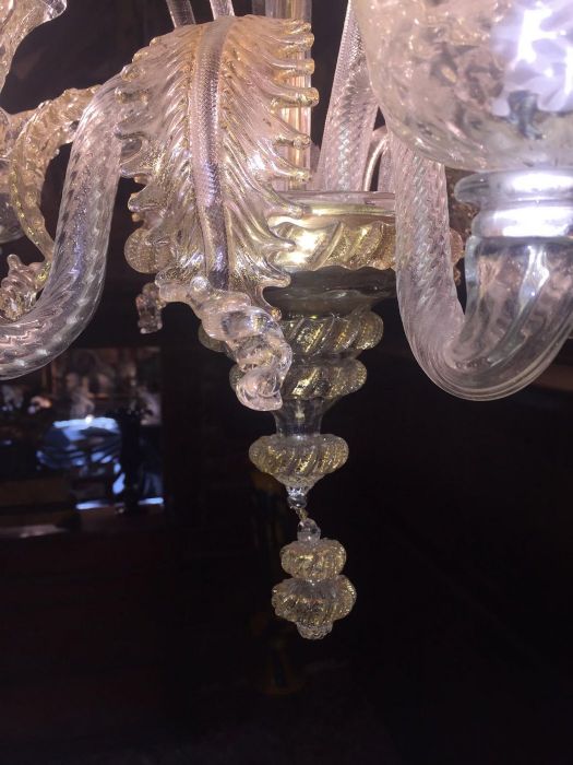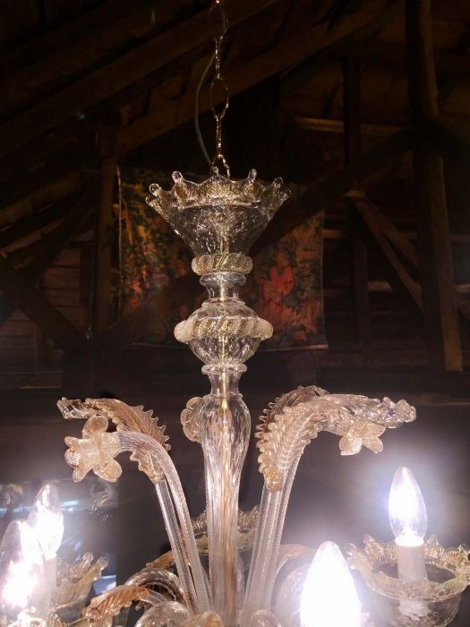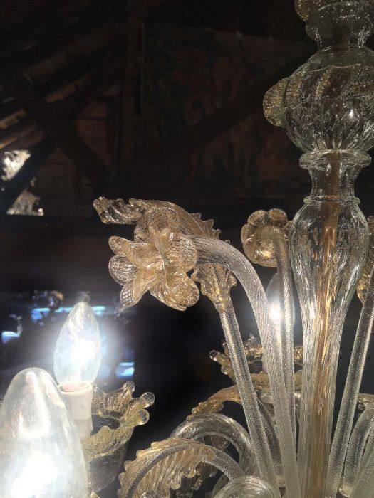 Gli steli delle foglie e dei fiori hanno la stessa caratteristica lavorazione dei bracci “a caldo”, i petali dei fiori sono “pinzati , a forma di Narcisi e delle foglie con particolare forma ritorta eseguiti a mano con maestria dai maestri vetrai di Murano.