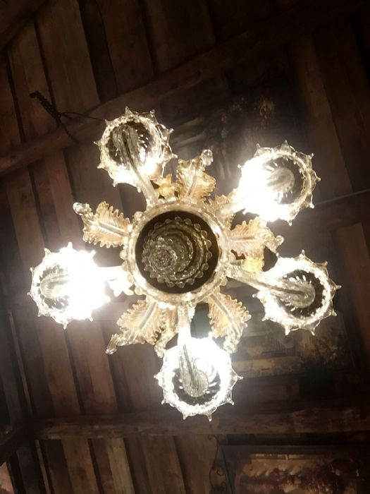 I suoi bracci sono rivolti verso l'alto con lavorazione a “rigamenà” ( o “torchon”) e coppe lavorate a “ballotton”,detto anche “cabochon”, per riflettere maggiormente la luce nell’ambiente.