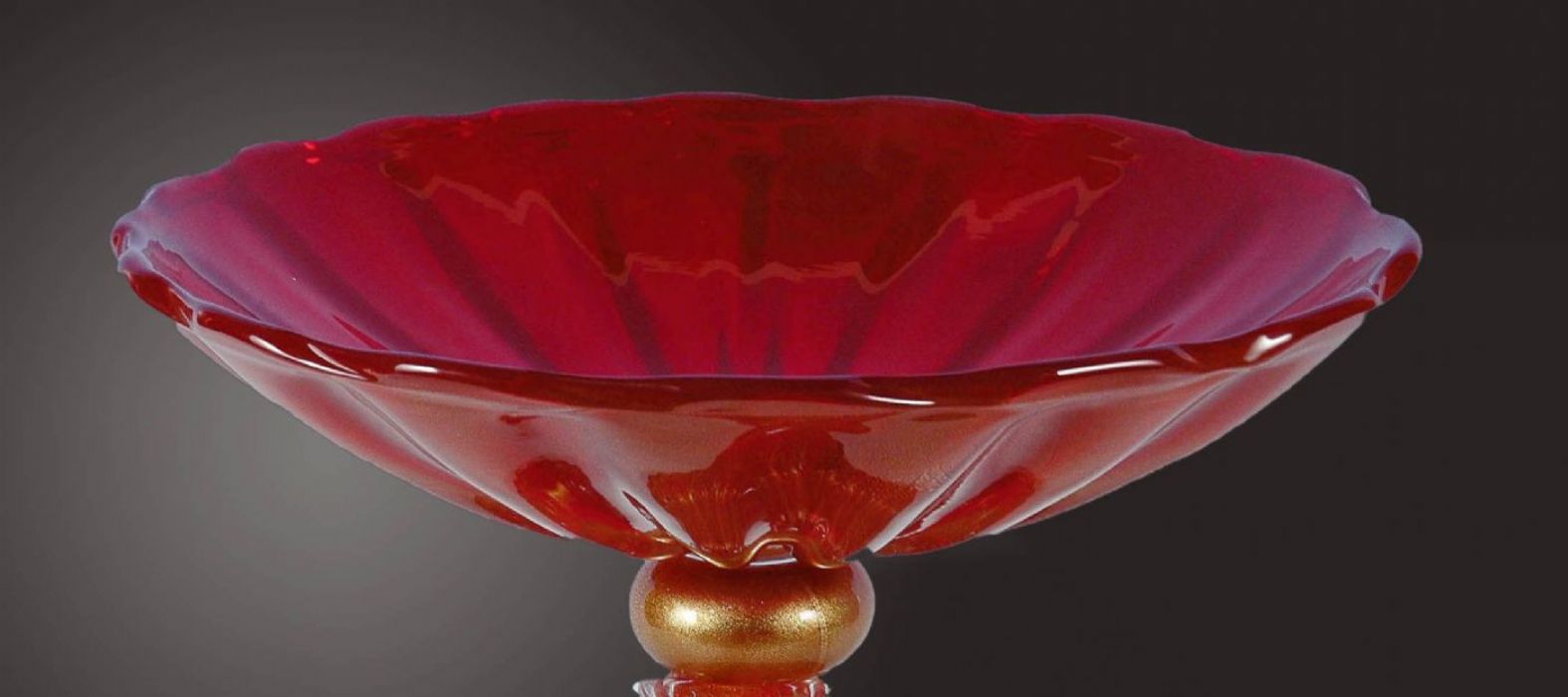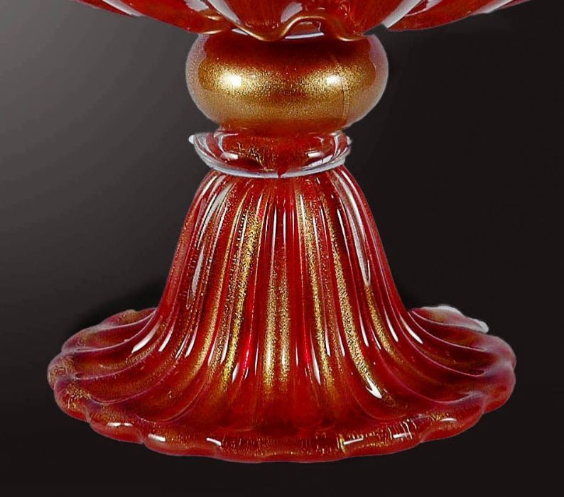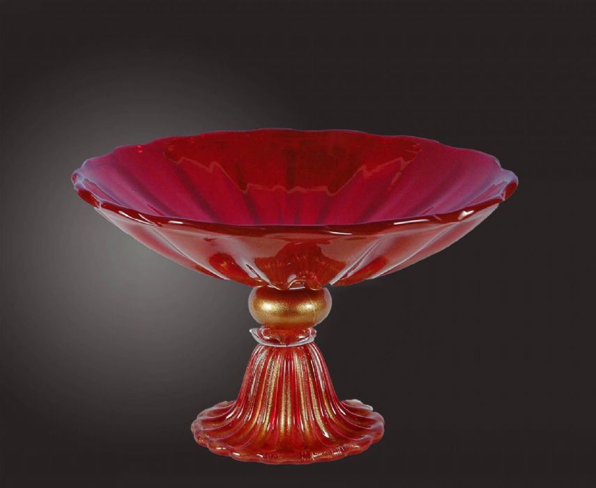 Elegante alzata colore rosso Venezia del maestro Vittorio Rigattieri. In vetro soffiato e tirato a pinza.