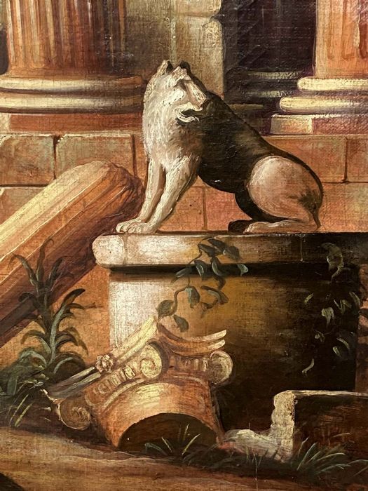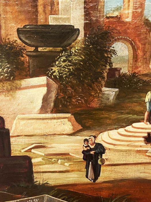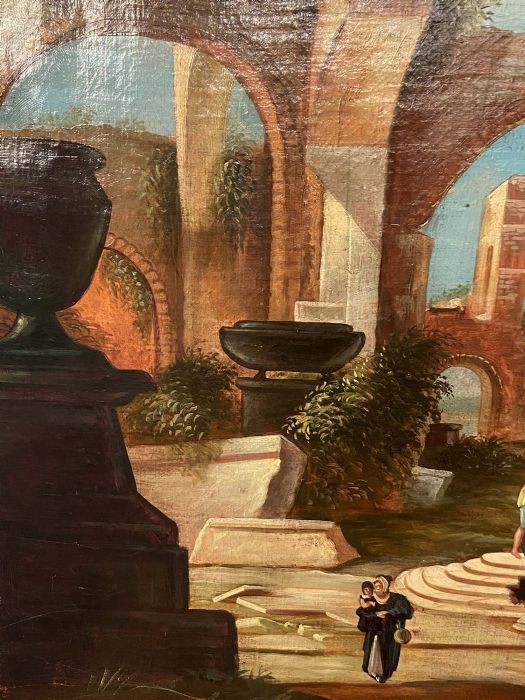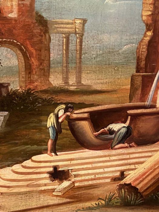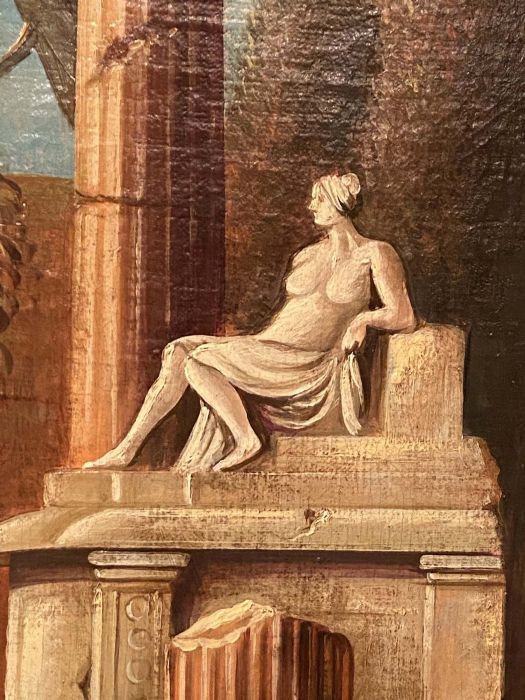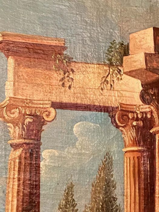 Dipinto di fantasia, decorativo, di chiara impronta neo - classicista, ben realizzato anche se di scuola. Ideale per una sala da pranzo o per uno studio.