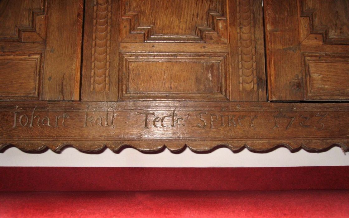 Piede a terra intagliato e rialzato. Il mobile è datato 1723 e firmato.