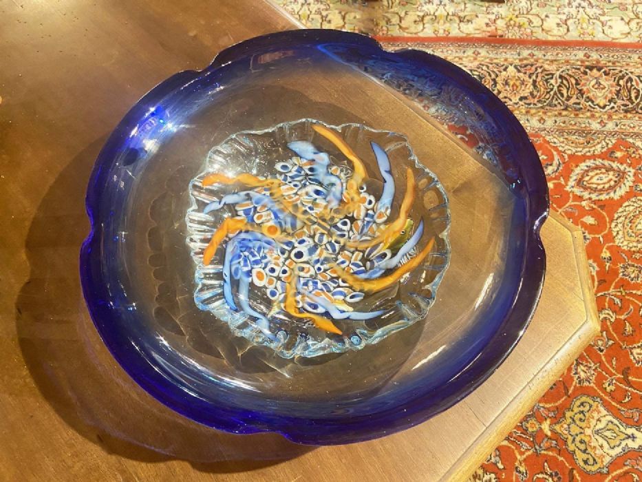 Grande piatto centro tavola reversibile con policromie marine.