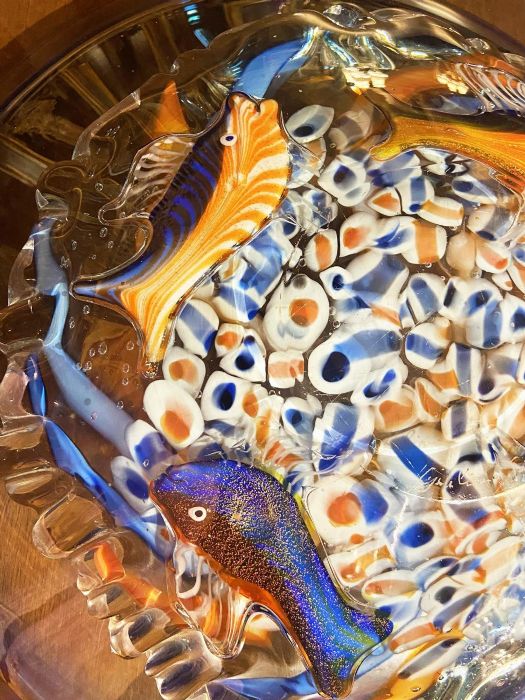 La tecnica della "sommersione" e dell'"incalmo", utilizzate con estrema maestria dall'artista, consente di poter utilizzare il piatto sia da una parte che dall'altra, ricordando, se capovolto, l'aspetto di una medusa, con i pesci "remora" che ne ricoprono la superficie con un effetto tridimensionale.