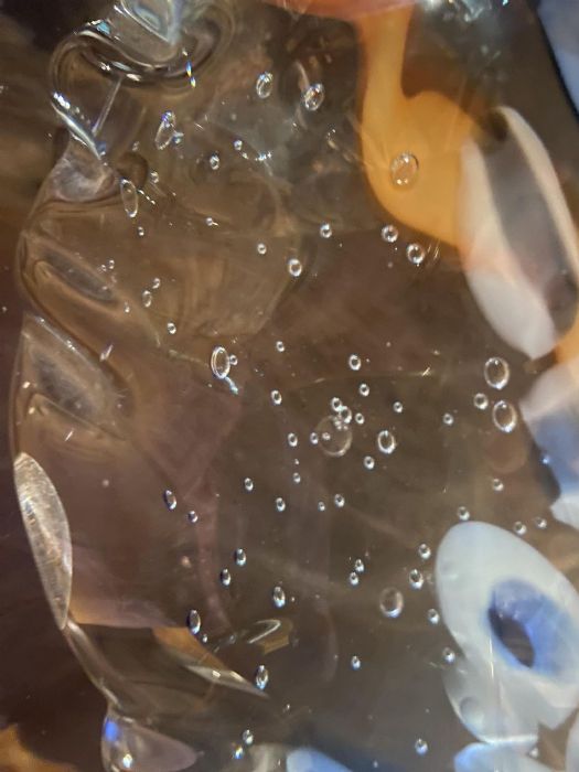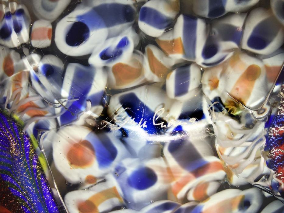 Difficile e tipica tecnica muranese che consiste nella saldatura a caldo di due soffiati aperti, generalmente di colore diverso.