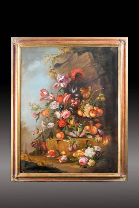 L’autore di questi due bellissimi quadri rende realista al massimo la frutta e i fiori che dipinge posando le sue “nature morte” su delle rocce rendendo il tutto di grande effetto scenico.