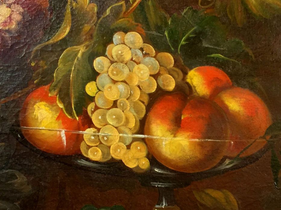 COPPIA DI GRANDI NATURE MORTE OLANDESI DELL'OTTOCENTO CON FIORI E FRUTTA - oli su tela (1) (NEW ENTRY)