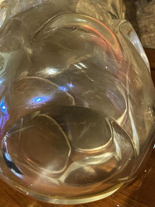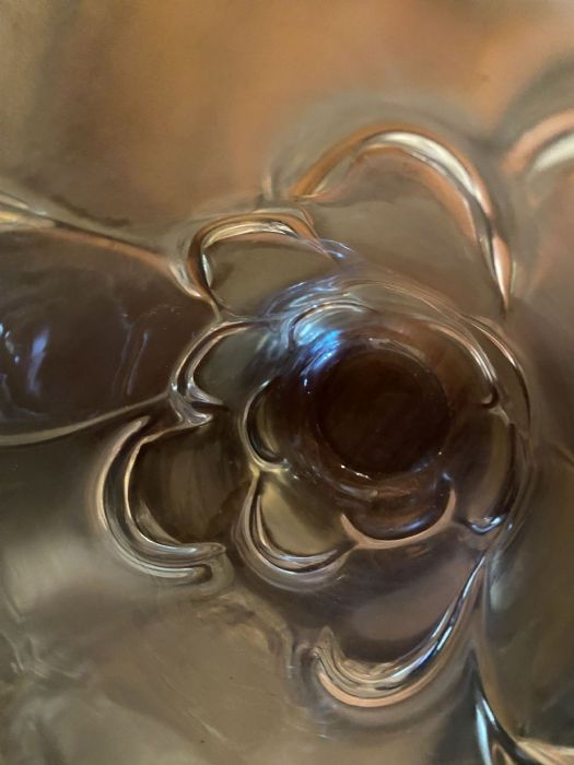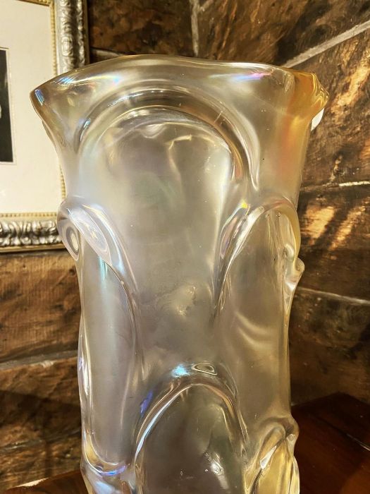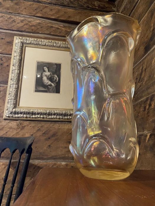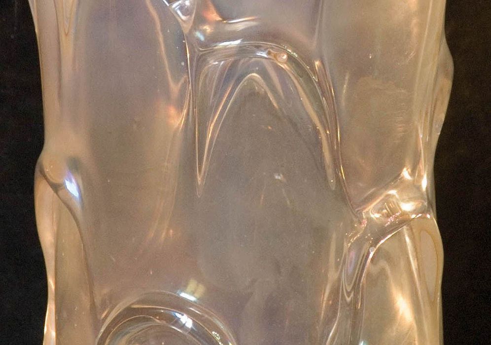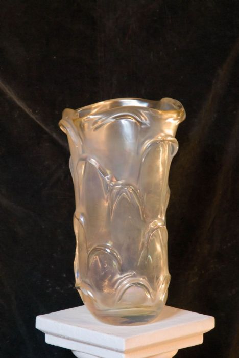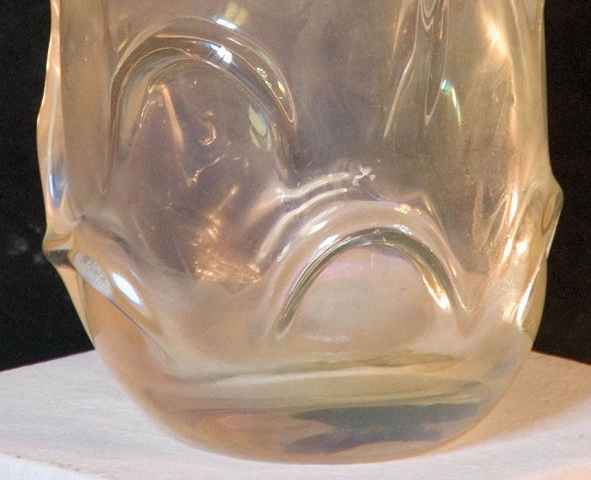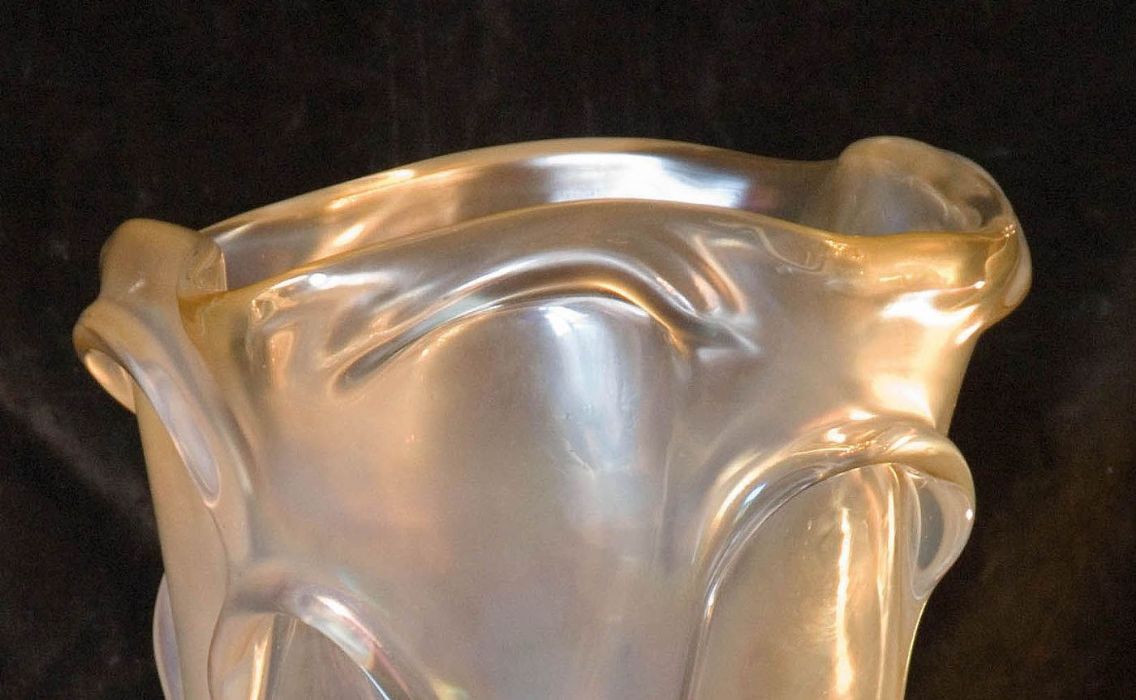 Importante e particolare vaso a onde in vetro iridescente e oro.