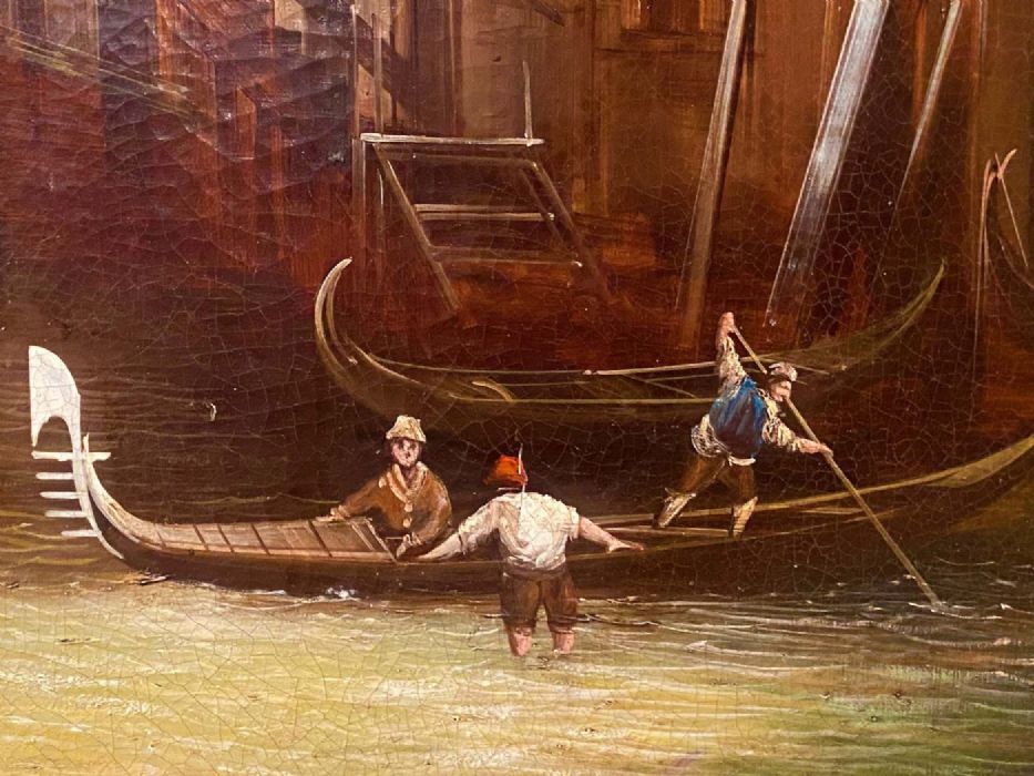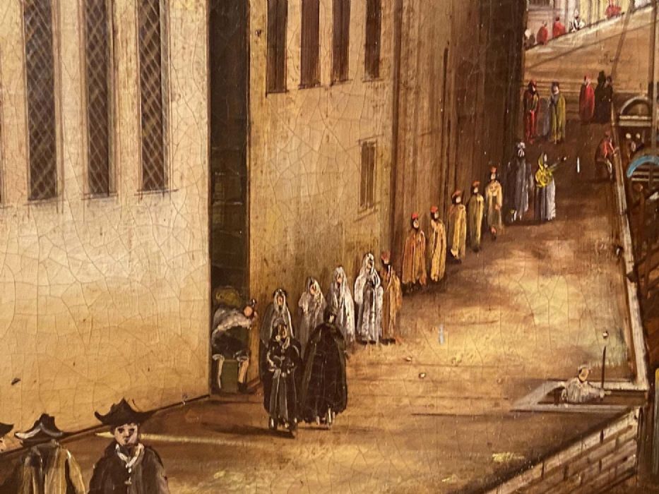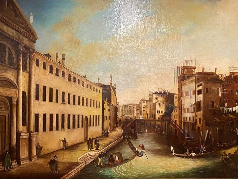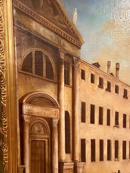 Opera liberamente interpretata dal Canaletto da anonimo pittore di fine Ottocento con grande qualità pittorica, colorismo e tecnica prospettica.