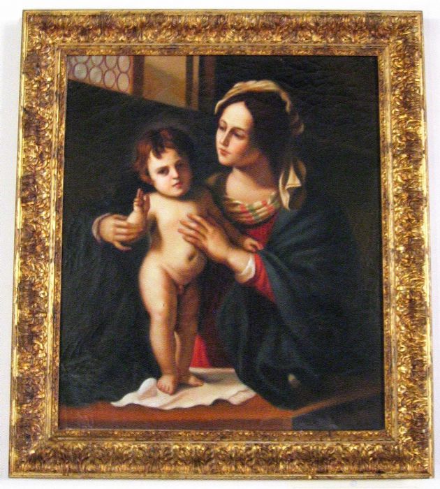 MADONNA COL BAMBINO BENEDICENTE - olio su tela (copia antica dal GUERCINO)