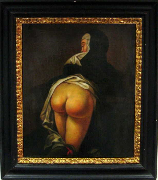 In questa deliziosa COPPIA DI INSOLITI DIPINTI "BURLESQUE" ritroviamo quel gusto, tipicamente tardo ottocentesco, di trattare in modo scanzonato argomenti di origine tradizionale o seria come queste divertenti raffigurazioni di due monache di "clausura", interpretate secondo i canoni tipici della Scapigliatura. Una "clausura", come si può notare, "molto particolare".
