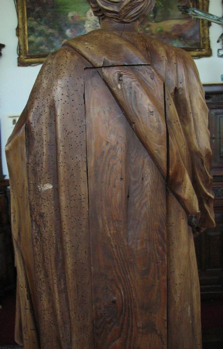 Bella scultura, di grandi dimensioni, in legno di cirmolo con panneggio ricco ed ottimo effetto plastico.