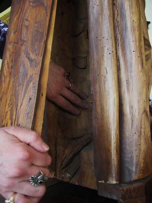 Dietro l'opera cela un vano forse un tempo utilizzato come reliquiario o segreta con sportello apribile.