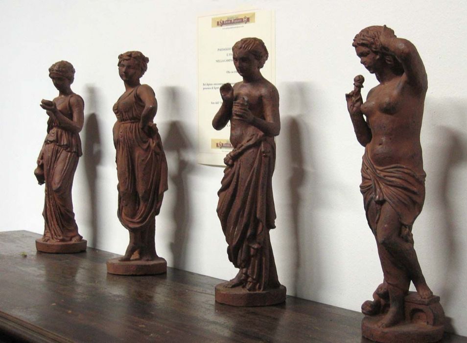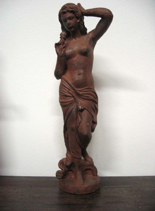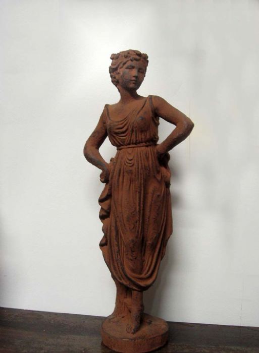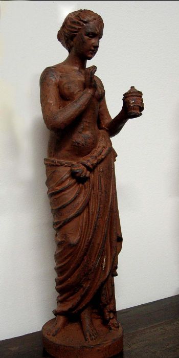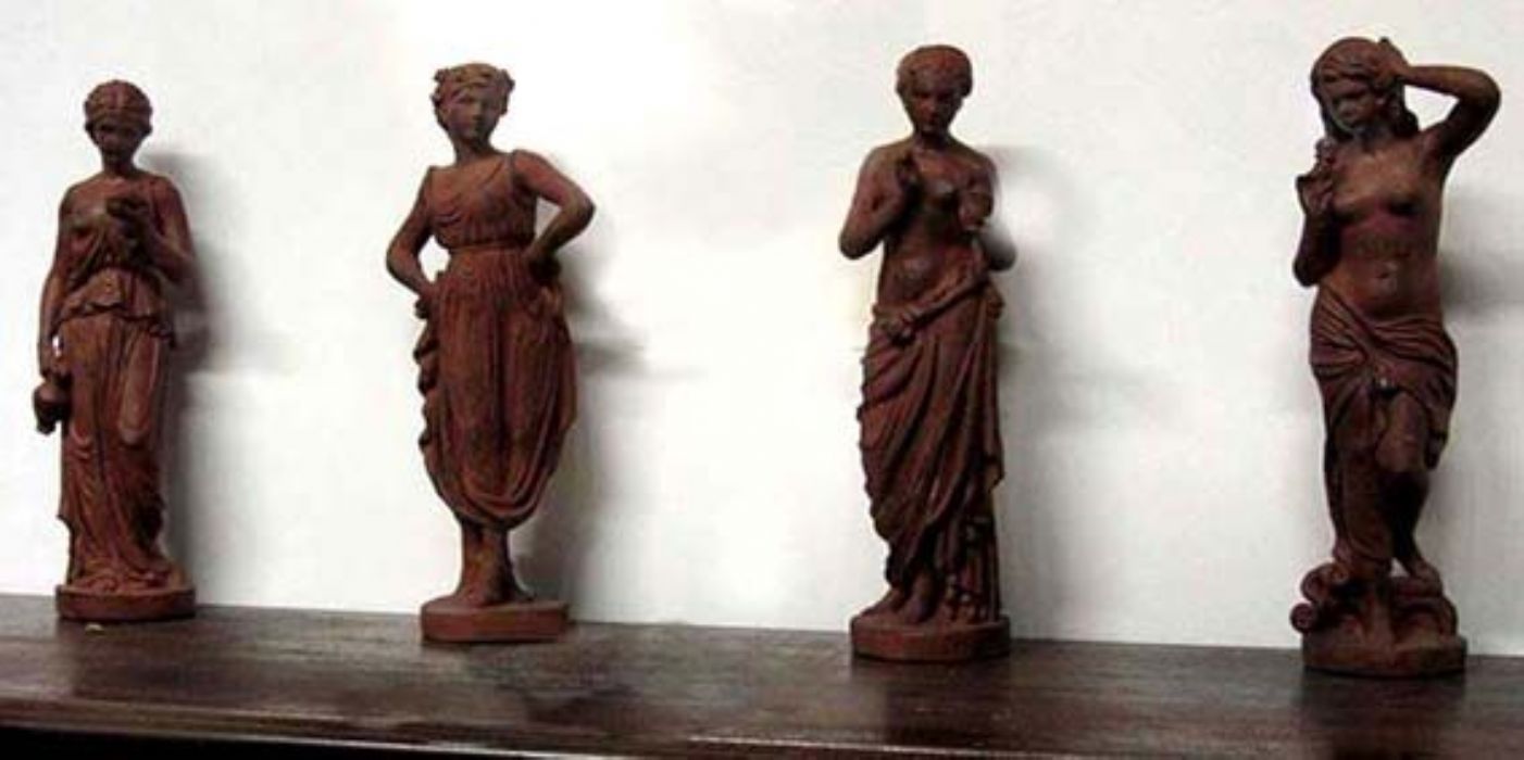 Piccole sculture in fusione di ghisa raffiguranti figure femminili beneauguranti.