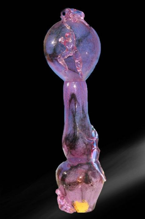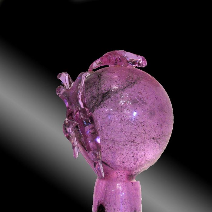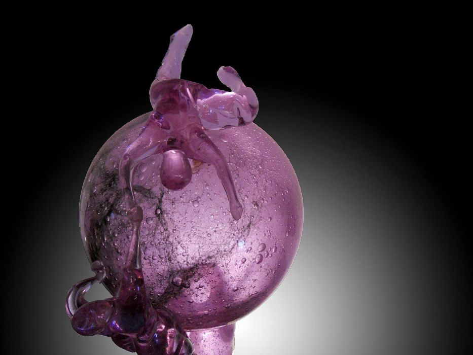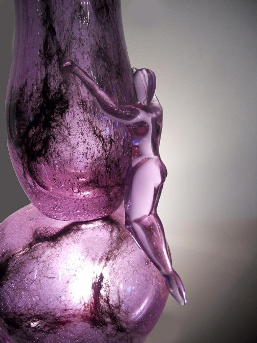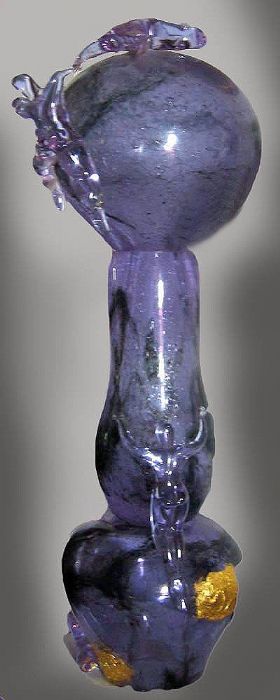 Scultura in vetro soffiato con lavorazione "a ghiaccio pulegoso" e intrusioni in oro e alga nera.