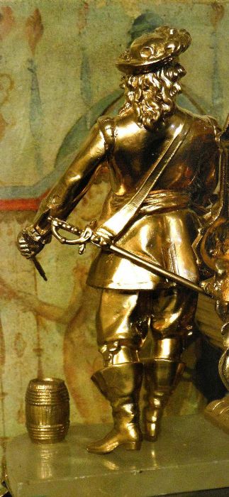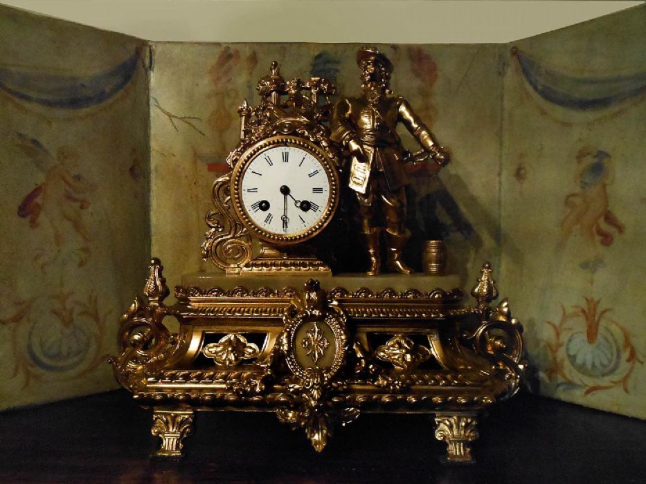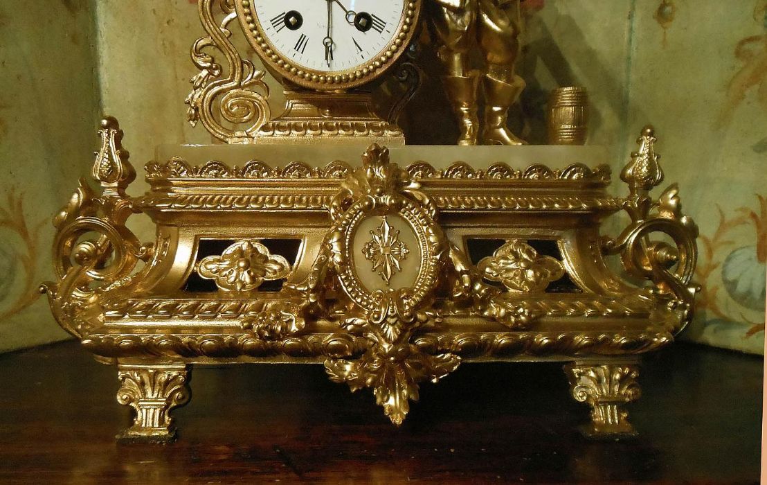 Orologio a pendolo "Parigina" raffigurante Portos che brandisce lo scudiscio con accanto una botte di vino porto.