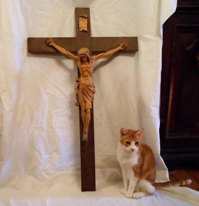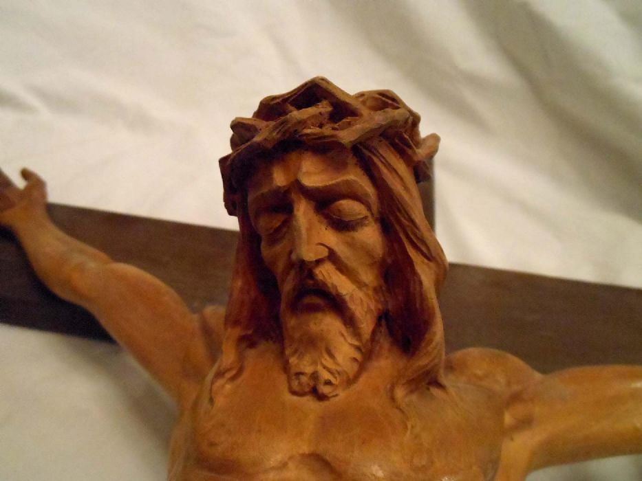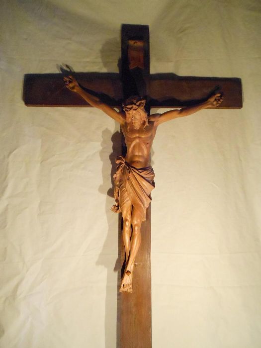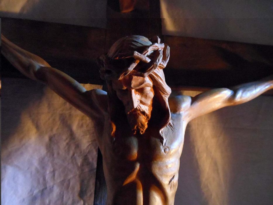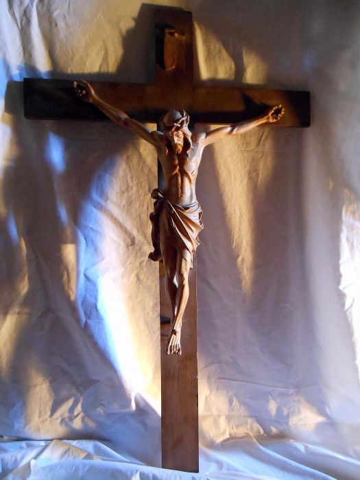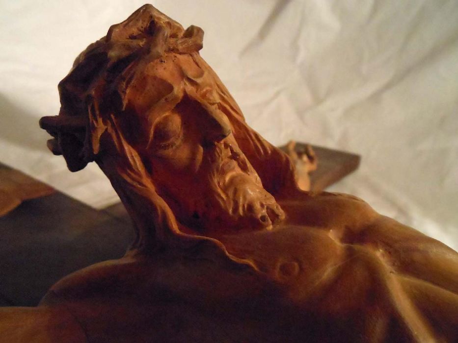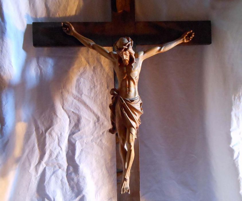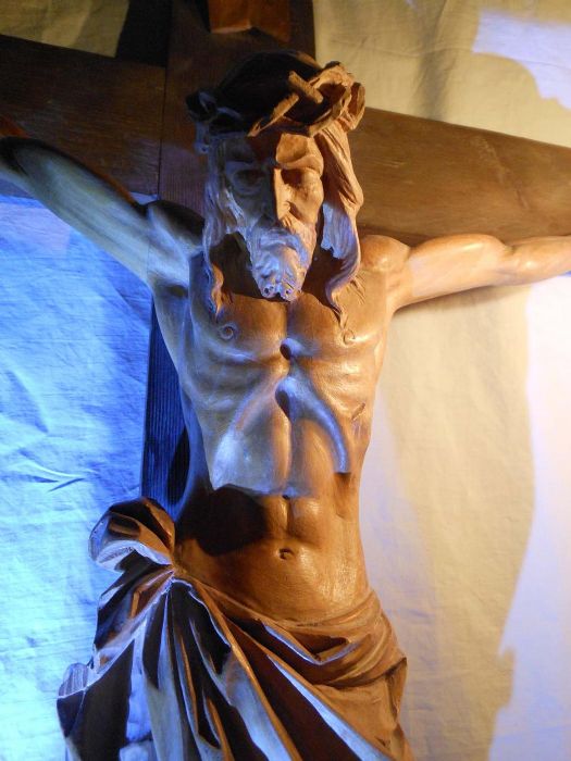 Struggente interpretazione, scolpita in legno di tiglio, di uno dei soggetti sacri più difficili da affrontare proprio perché divenuto, nel corso di oltre duemila anni, “icona” dell’ispirazione artistica. L’anonimo maestro riesce a rendere emozionante e suggestiva la drammatizzazione di Gesù morto sulla Croce. La sapienza anatomica del volto, le salienze ossee del corpo prosciugato dalla sofferenza, la leggerezza delle pieghe del drappo, testimoniano la maestria dello scultore. La dimensione domestica dell’opera ( né grande né piccola) rendono evidente la sua unicità probabile frutto di una committenza privata per adornare un altare o una cappella. I rimandi alla tradizione naturalistica germanica di stampo post-dureriano sono evidenti così come il gusto per la rappresentazione quasi miniaturistica dei particolari anatomici.