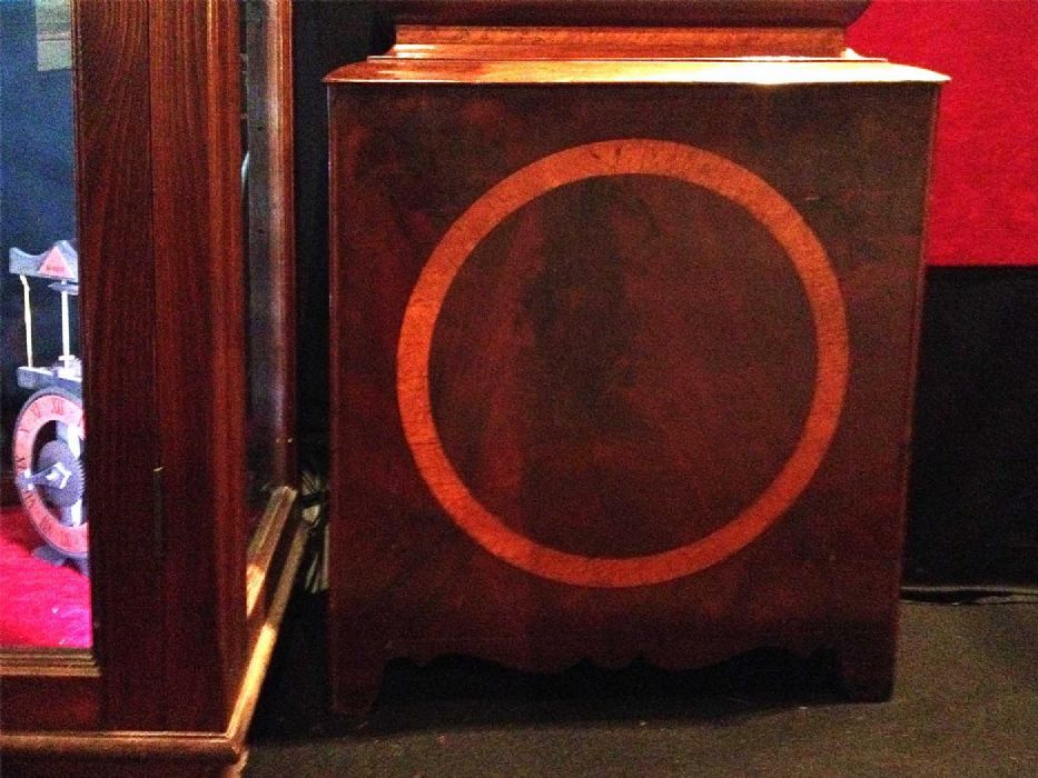 Rifinito e decorato con legno "satin-vood" secondo i modelli compositivi della scuola di Liverpool. Movimento a pendolo di alta qualità e precisione dei maestri orologiai "Finney di Ipswich" e "More di Liverpool". Marcatura nella controplatina che identifica la sua originalità. Carica di 8 giorni.
