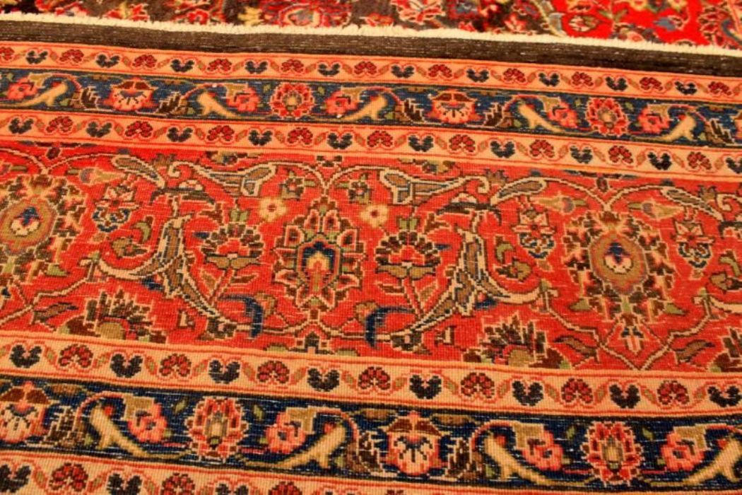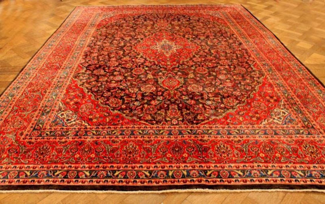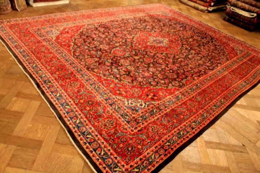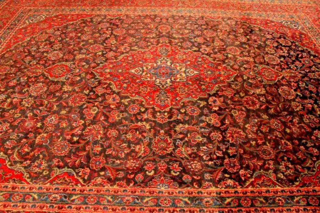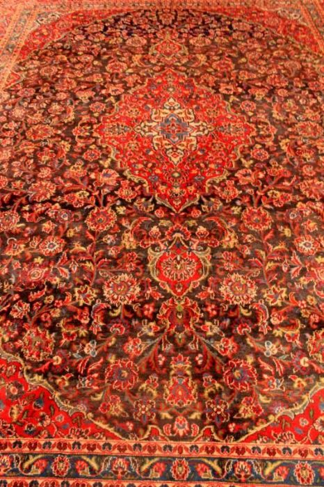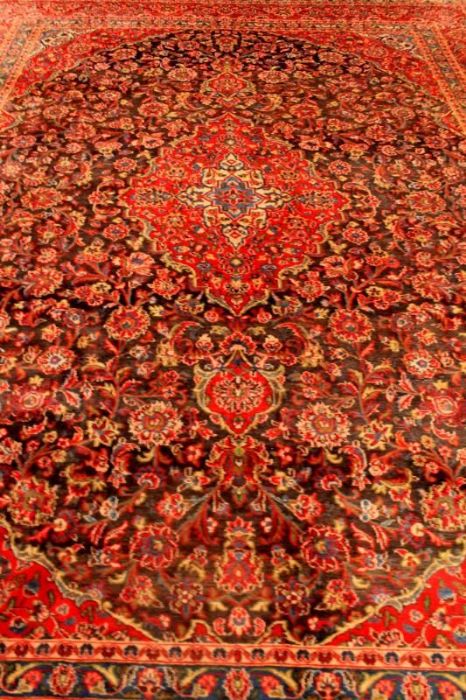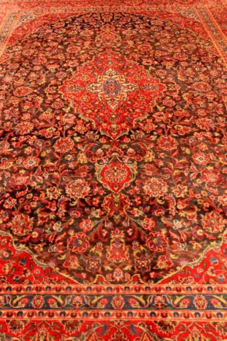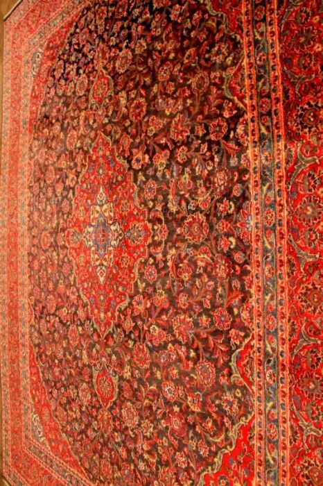 E' davvero incredibile la fittezza dell'annodatura a mano di questo magnifico e raro KESHAN ( KASHAN) SAROUGH NAIN, con classico medaglione centrale a forma di rombo, decorii floreali e naturalistici con motivi di animali. i colori sono vegetali, il vello è in pura lana con trama e ordito in cotone. Tappeto elegantissimo e classico che sfiora i 12 metri quadrati. Ben conservato, lavato e igienizzato, ha circa 50 anni.