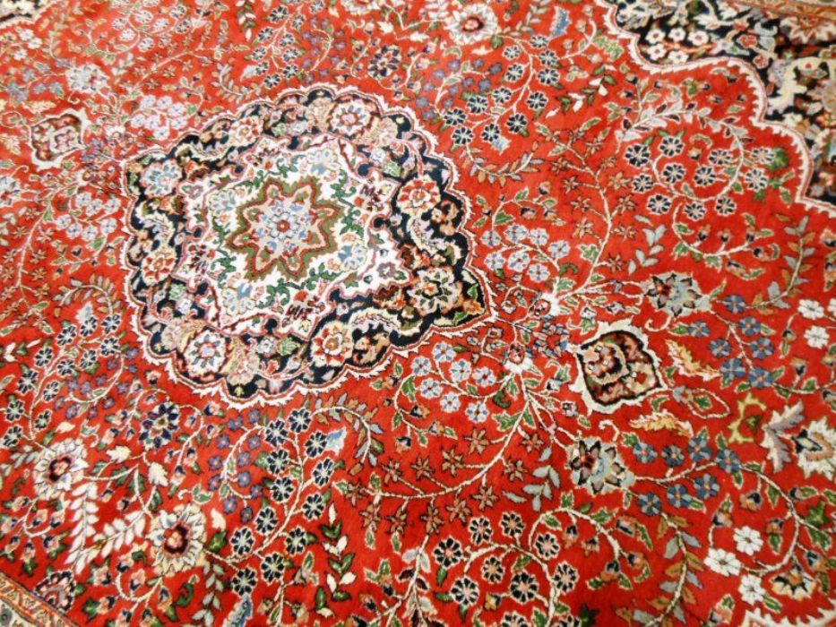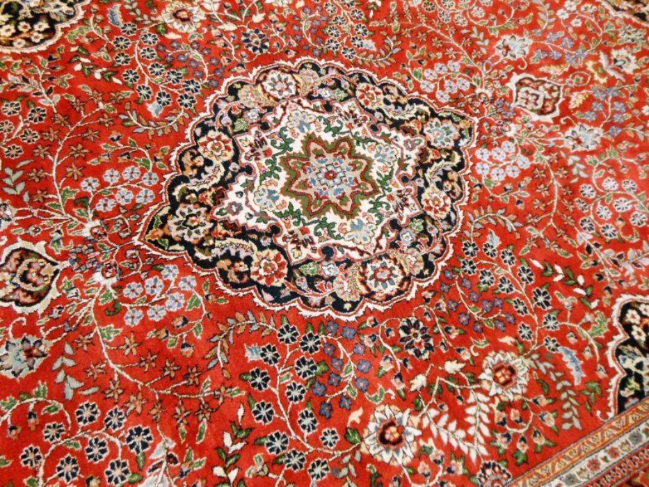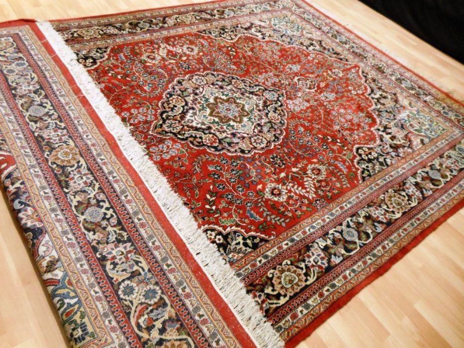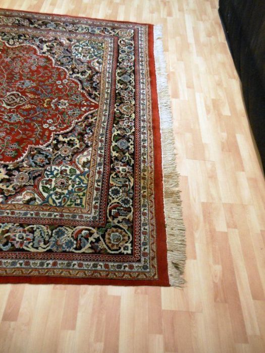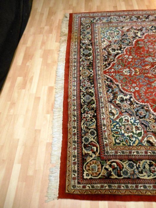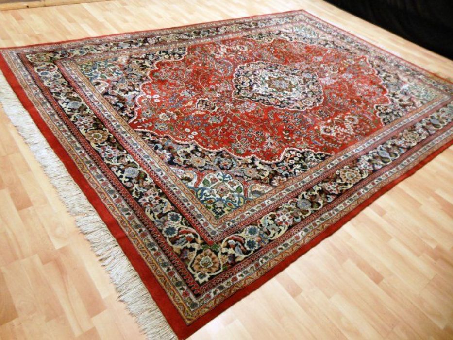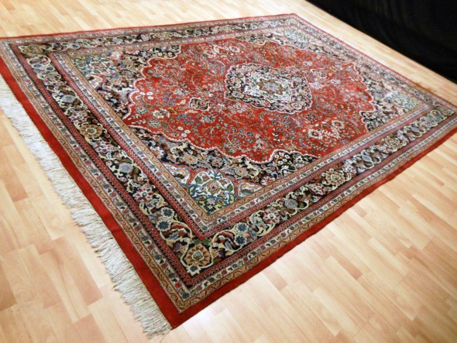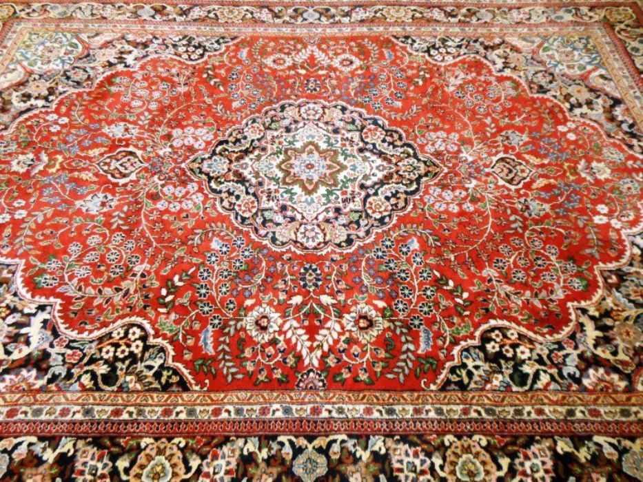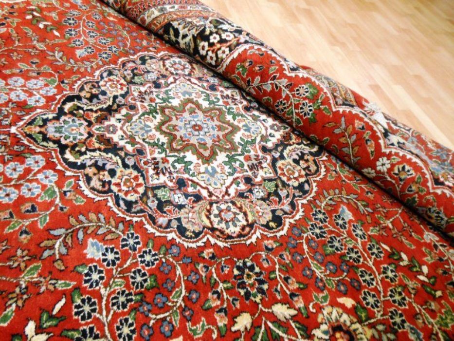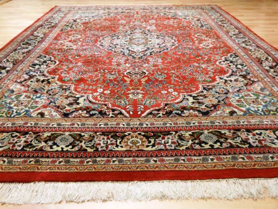 Proponiamo qui una dei tappeti più significativi dell’intero panorama riferibile agli antichi persiani. Si tratta di un meraviglioso SAROUGH (SARUK) di grandi dimensioni. I suoi decori, evidenziati dai fittissimi nodi realizzati a mano, sono così particolareggiati e concentrati, pur restando sempre visibili, da creare un effetto “tavolozza policroma” veramente indimenticabile. Il vello è in purissima lana con trama e ordito in cotone, colori ovviamente vegetali con bordature e frange in perfette condizioni. Il tappeto ha circa 90 anni. Si tratta davvero di un pezzo di cultura dell’Antica Persia.