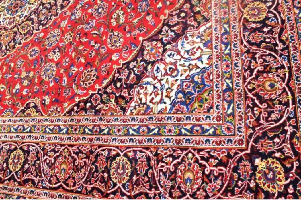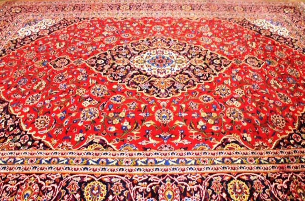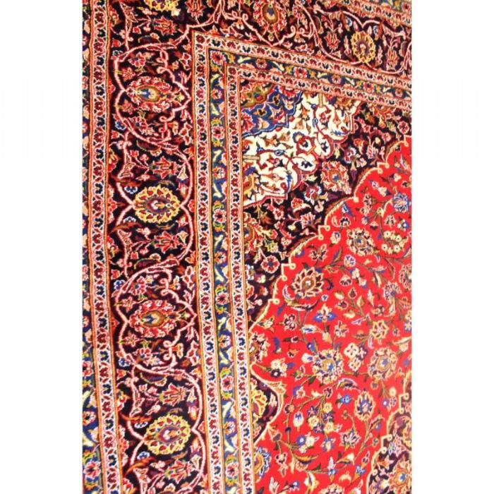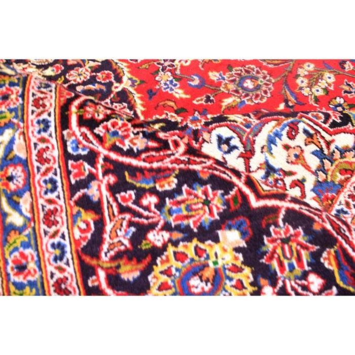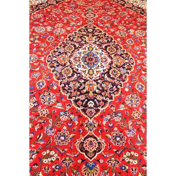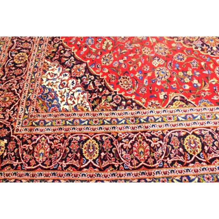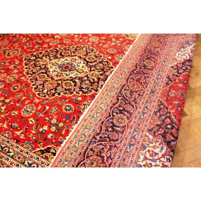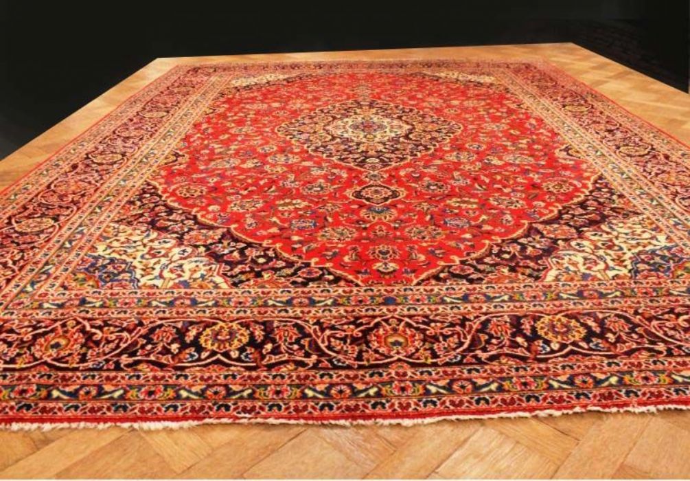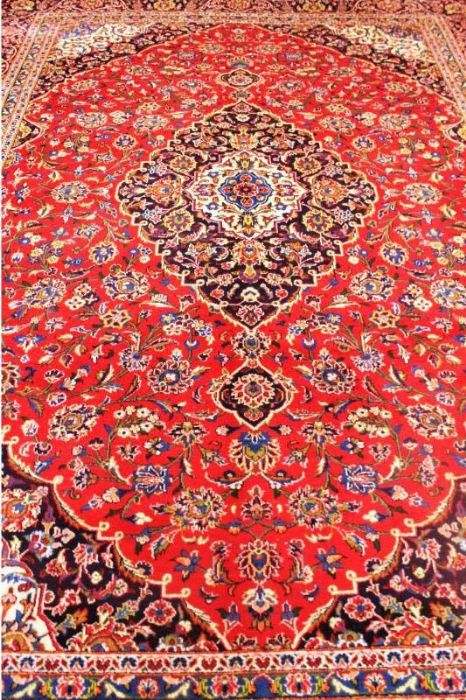 Classico e raffinato KESCHAN – QOUM ( QOM) di grandi dimensioni ( 12 metri quadrati) con bellissimo decoro floreale. Fittamente annodato a mano, presenta vello di pura lana su trama e ordito in cotone e vivaci colori vegetali. Il tappeto ha circa 40 anni.