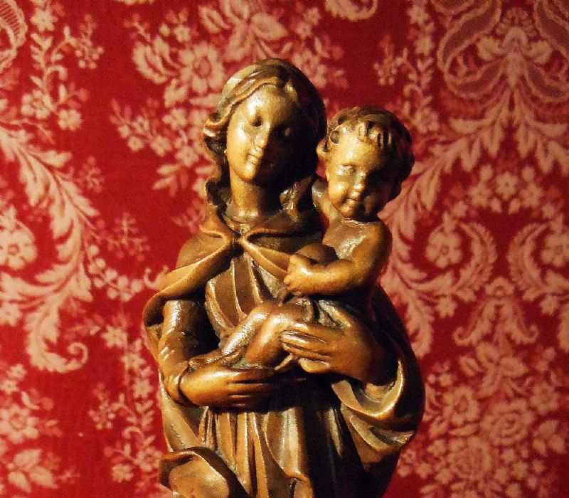 "MADONNA COL BAMBINO" LIGNEA DA ALTARE DOMESTICO